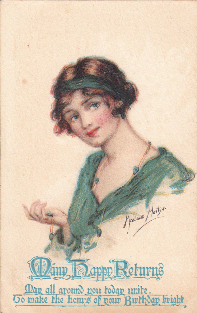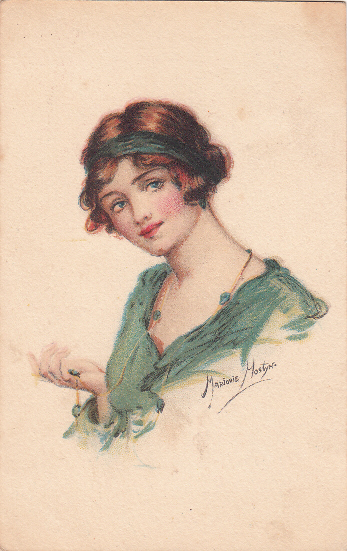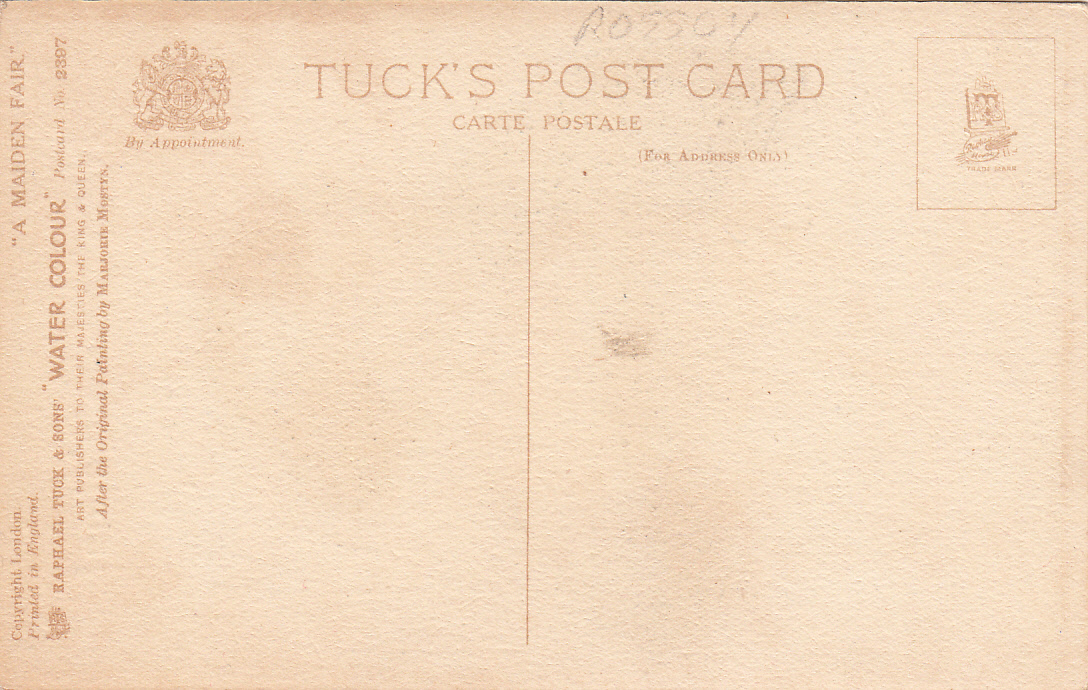 WATER COLOUR, COPYRIGHT LONDON, PRINTED IN ENGLAND, AFTER THE ORIGINAL PAINTING BY MARJORIE MOSTYN.