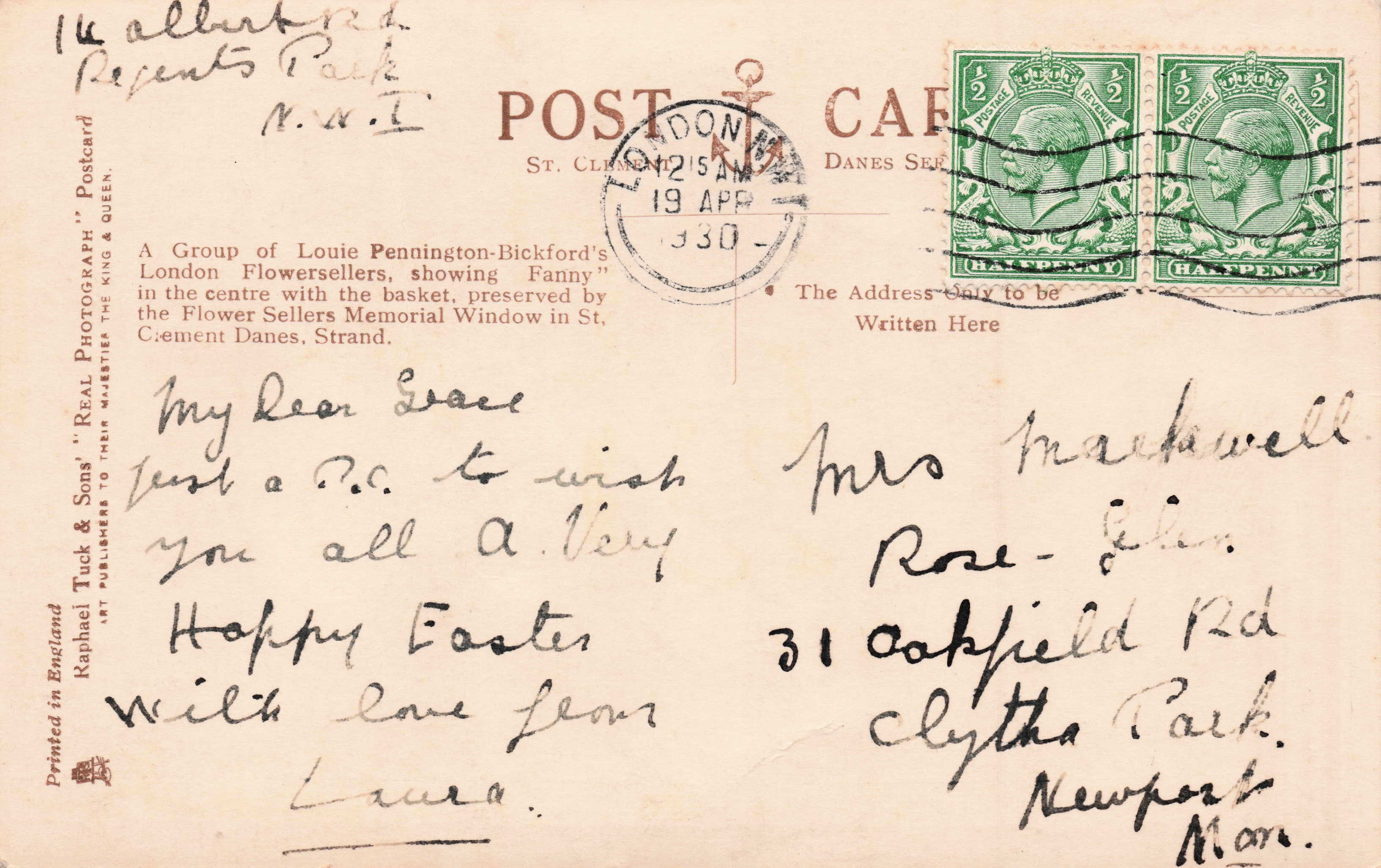 REAL PHOTOGRAPH, PRINTED IN ENGLAND, LOUIE PENNINGTON-BICKFORD'S LONDON FLOWERSELLERS