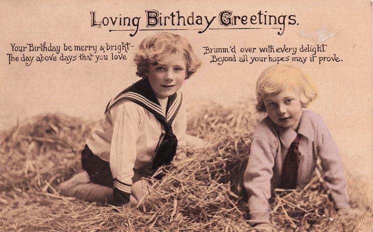 verse:- 'YOUR BIRTHDAY BE MERRY & BRIGHT - THE DAY ABOVE DAYS THAT YOU LOVE BRIMM'D OVER WITH EVERY DELIGHT BEYOND ALL YOUR HOPES MAY IT PROVE.'