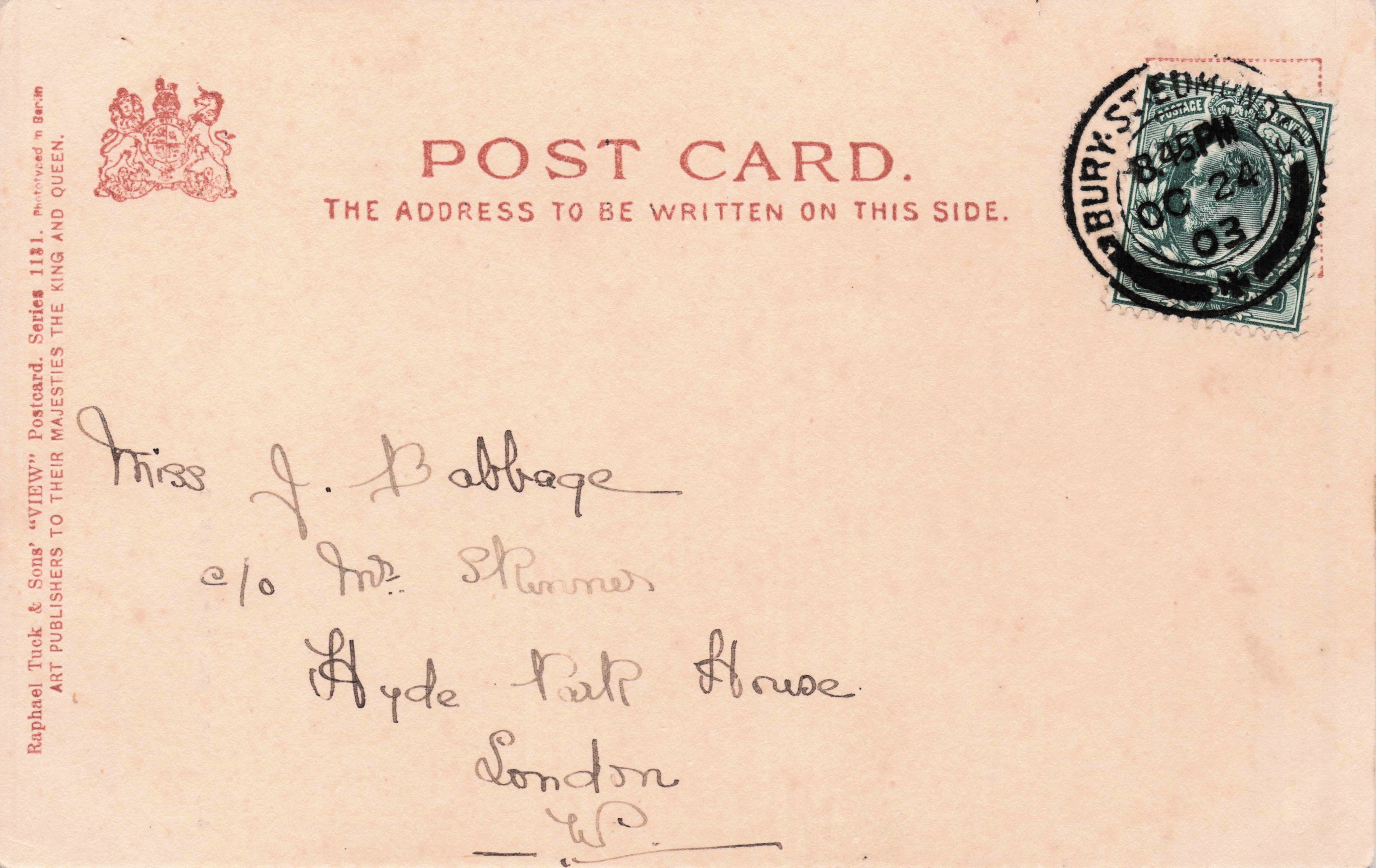 VIEW, PHOTOTYPED IN BERLIN, listed in 1904 POSTCARD Catalogue, come hand coloured.