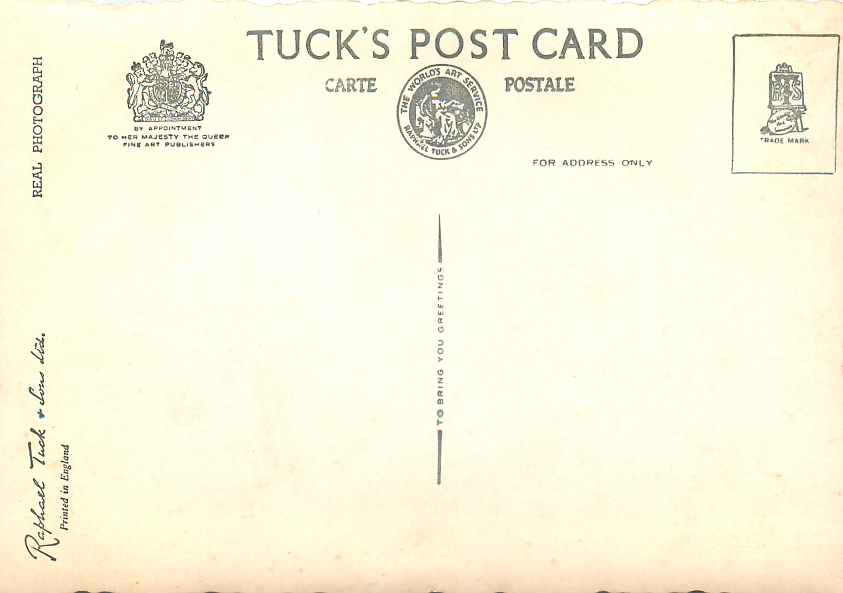 REAL PHOTOGRAPH, PRINTED IN ENGLAND, GREETINGS TO YOU or TO BRING YOU GREETINGS on back, scalloped edges.