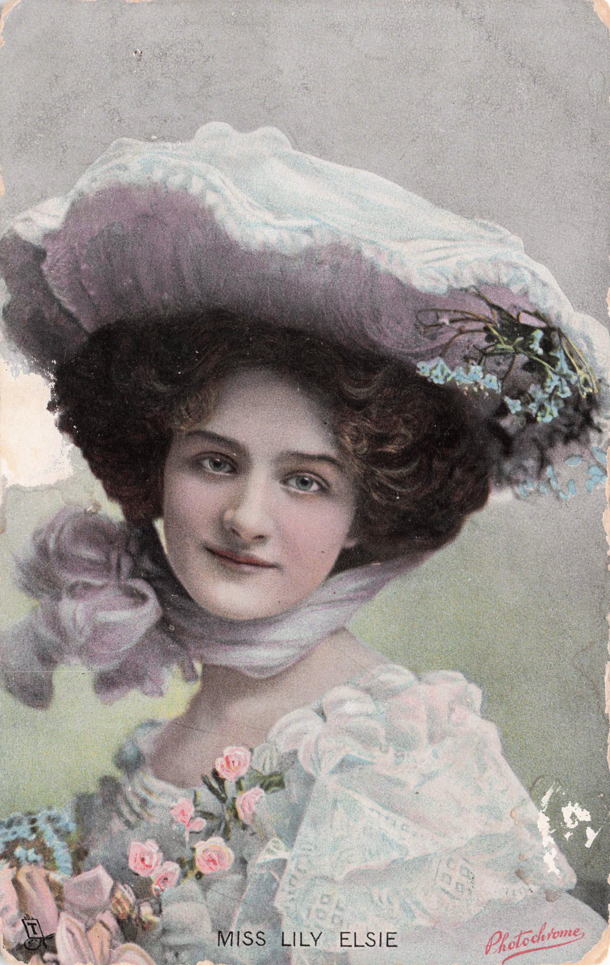 MISS LILY ELSIE wearing large hat