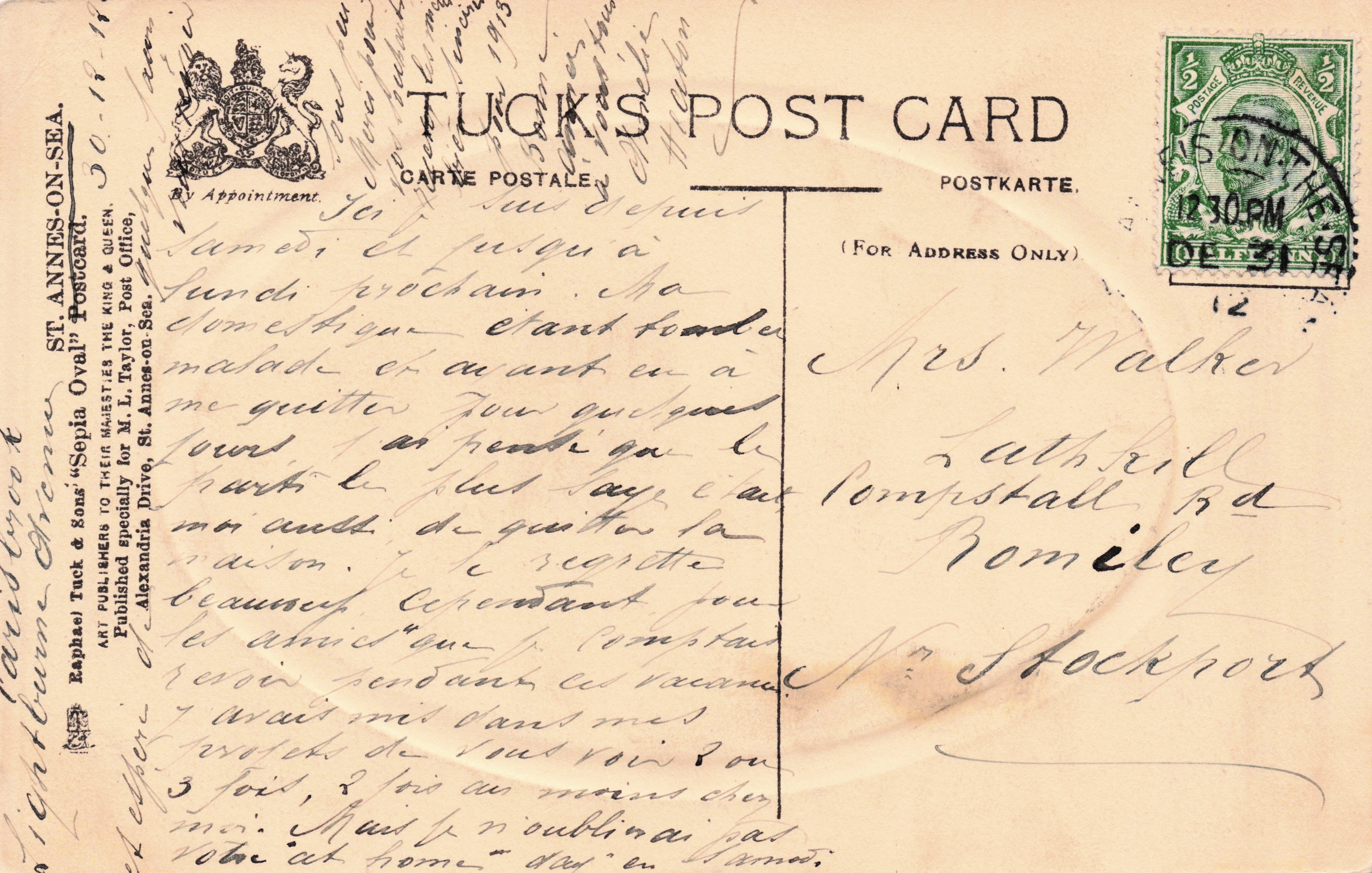 SEPIA OVAL, PROCESSED IN SAXONY (in stamp box), PUBLISHED SPECIALLY FOR M.L. TAYLOR, POST OFFICE, ALEXANDRIA DRIVE, ST. ANNES-ON-SEA.
