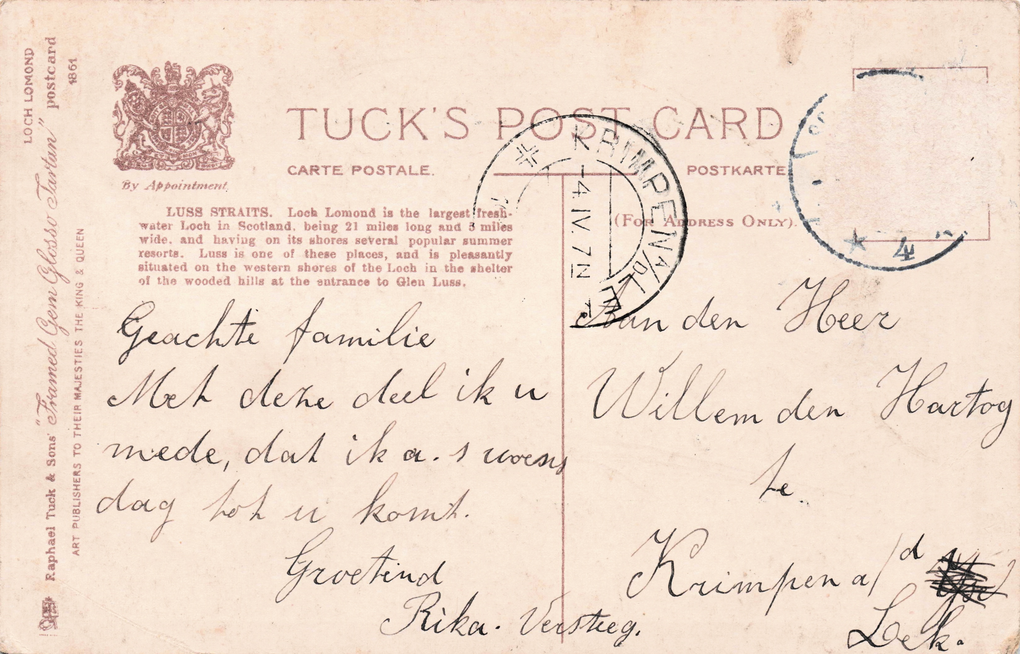 gilt, GREETINGS FROM LOCH LOMOND, WHITE HEATHER FOR LUCK, FRAMED GEM GLOSSO TARTAN, PROCESSED IN SAXONY (in stamp box), same images as set 1863