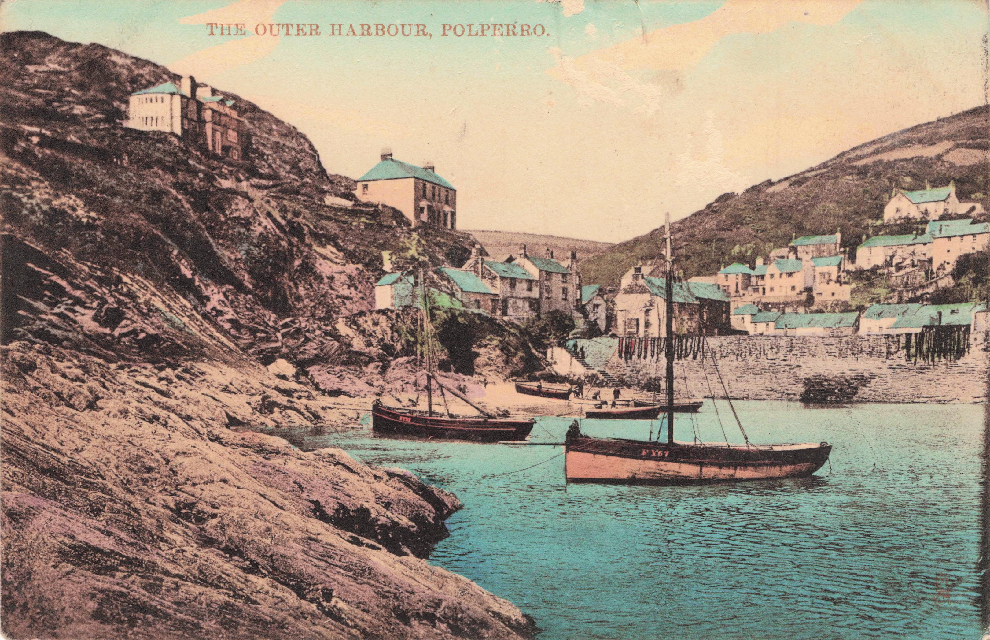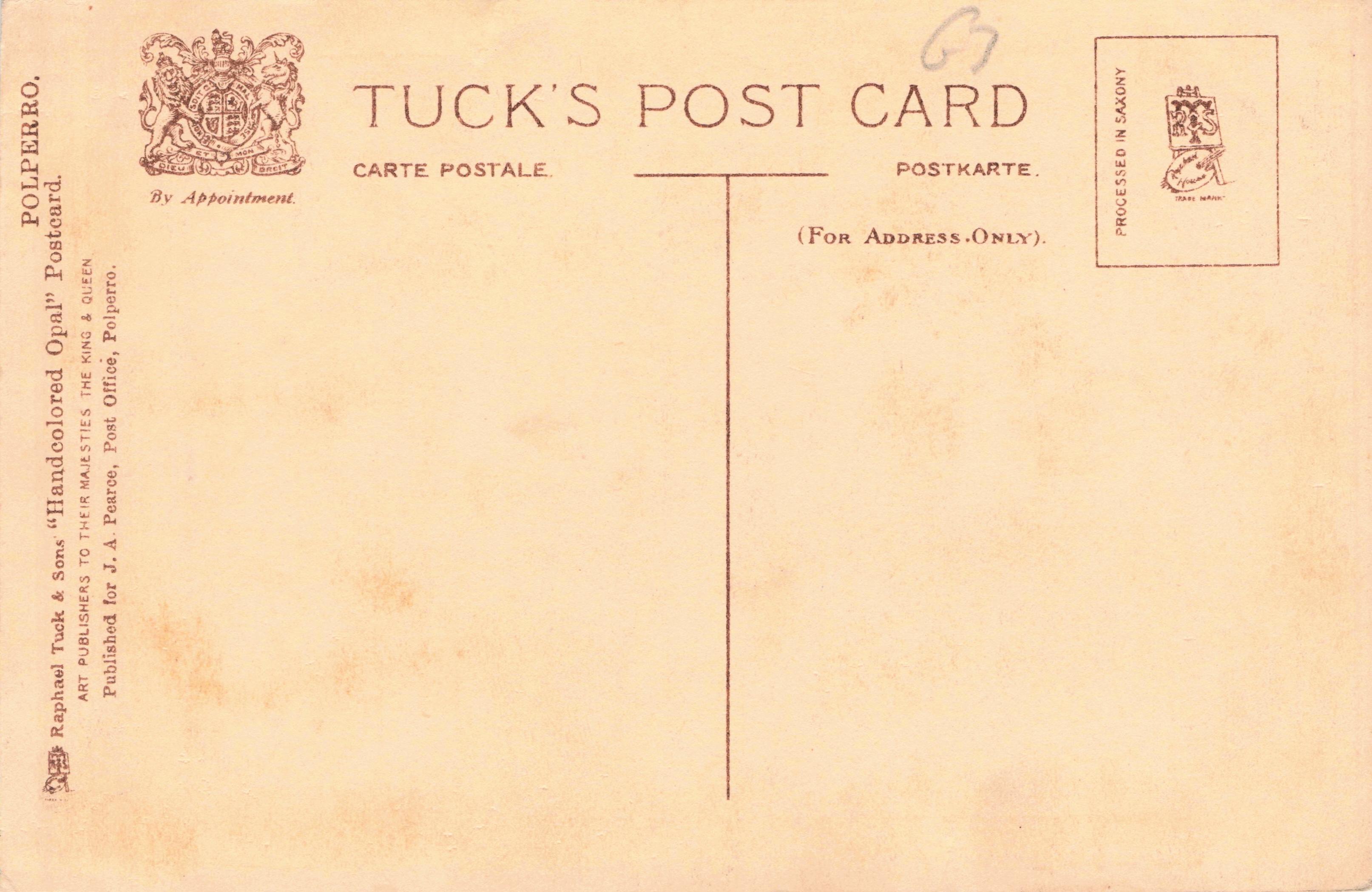 HANDCOLORED OPAL, PROCESSED IN SAXONY (in stamp box), PUBLISHED FOR J.A. PEARCE, POST OFFICE, POLPERRO. handcoloured