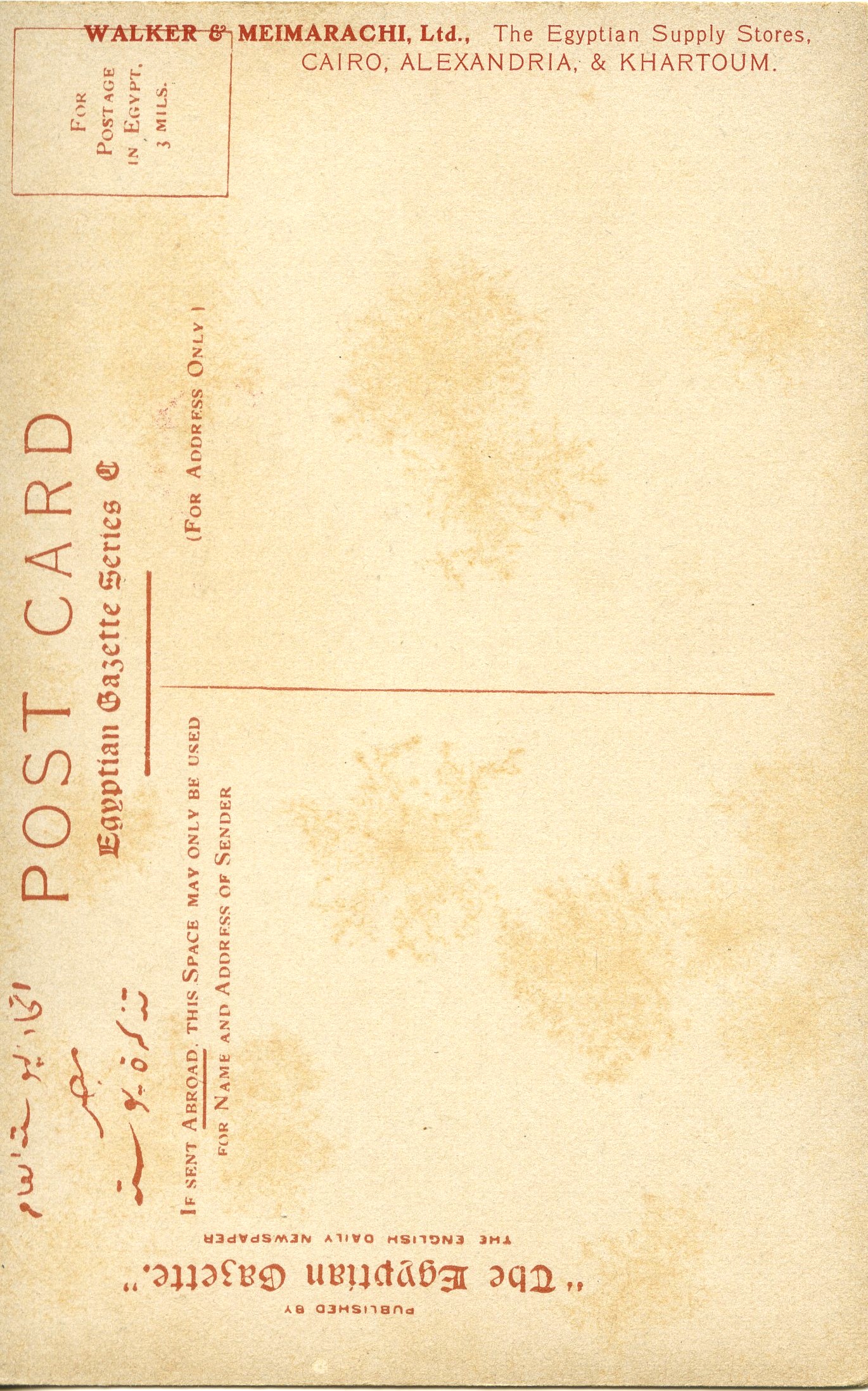 PUBLISHED BY THE EGYPTIAN GAZETTE, THE ENGLISH DAILY NEWSPAPER. has no Tuck name or markings, possibly not a Tuck so not sure what set it goes in