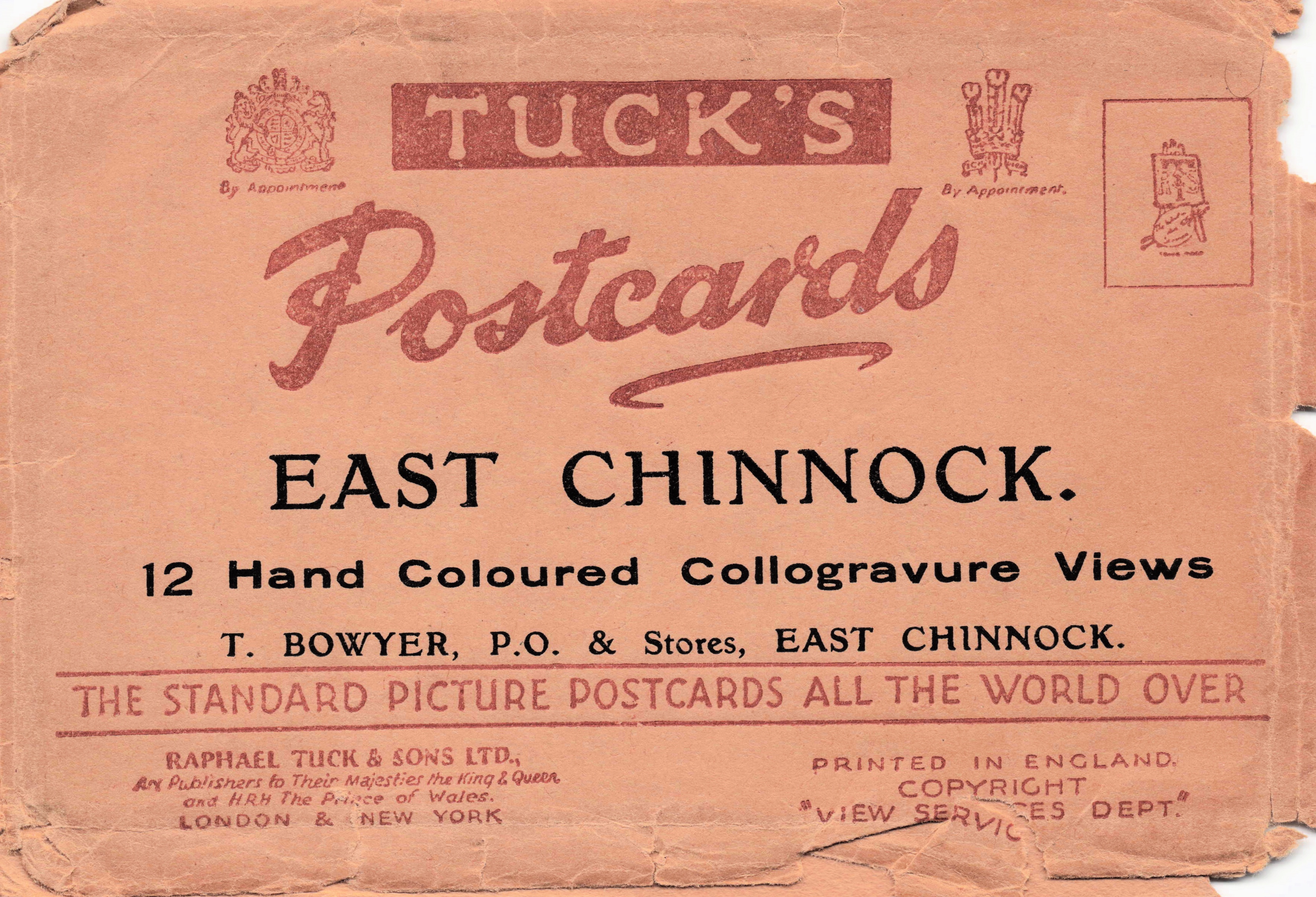sepia, PRINTED IN ENGLAND, come hand-coloured, on set cover but not on cards 12 HAND COLOURED COLLOGRAVURE VIEWS T. BOWYER, P.O. & STORES, EAST CHINNOCK.