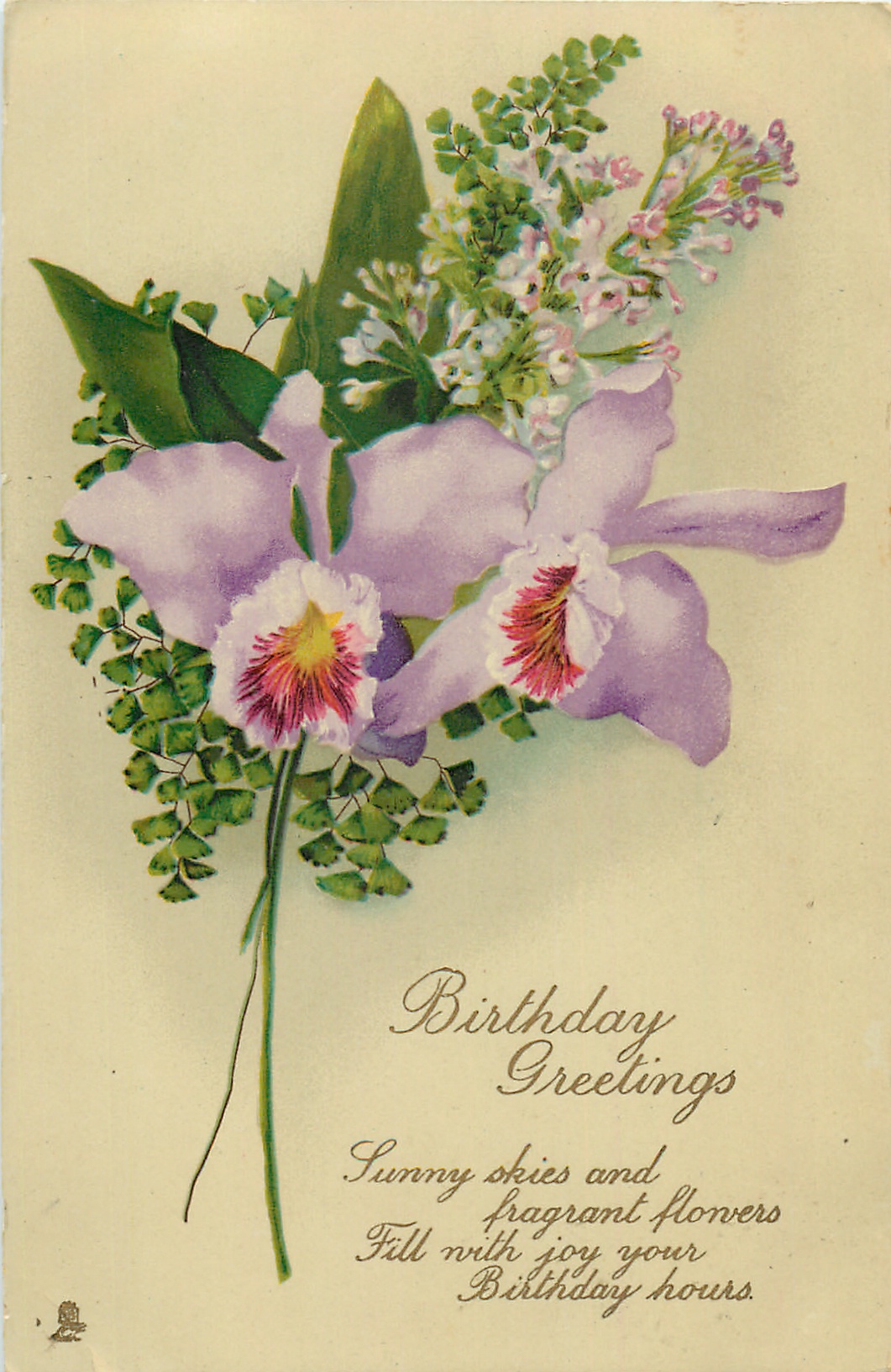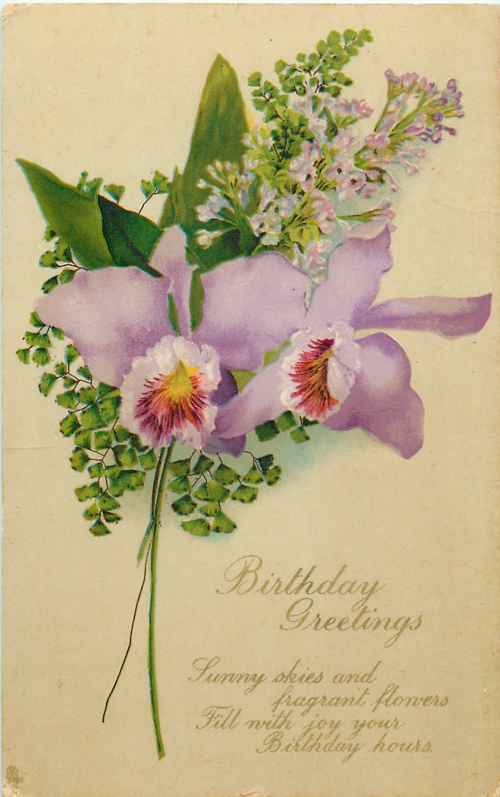 BIRTHDAY GREETINGS 2 orchids, lilac