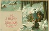A HAPPY CHRISTMAS two dwarves sit round christmas tree in snow