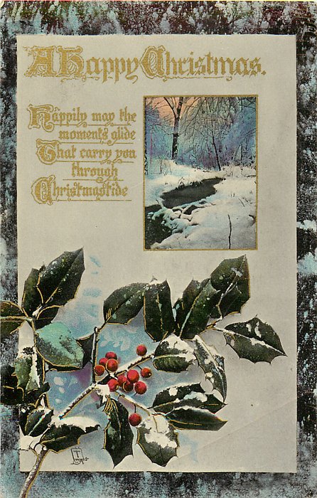 A HAPPY CHRISTMAS winter scene, holly