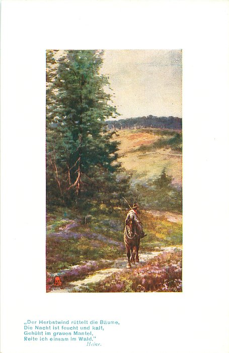 quote HEINE "DER HERBSTWIND RUTTELT DIE BAUME, DIE NACHT IST FEUCHT UND KAIT,GEHULIT IM GRAUEN MANTEL, REITE ICH EINEM IM WALD"