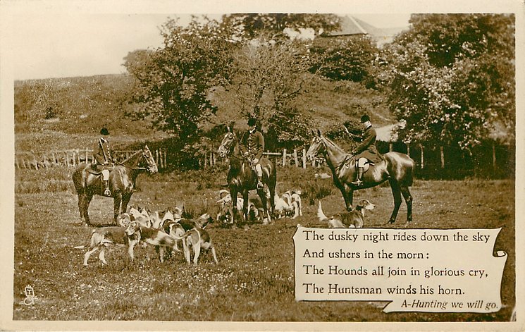 THE DUSKY NIGHT RIDES DOWN THE SKY// WINDS HIS HORN A HUNTING WE WILL GO
