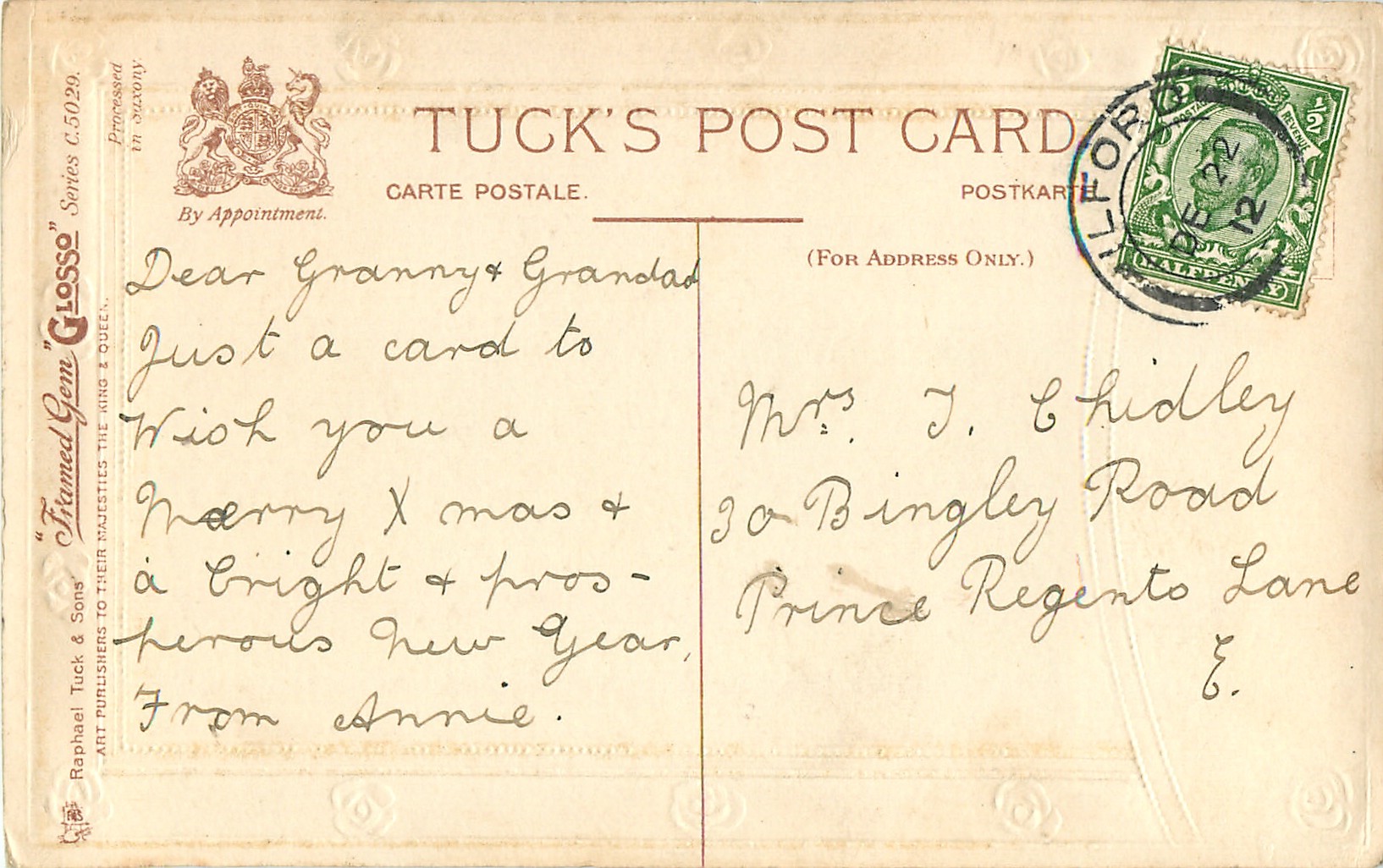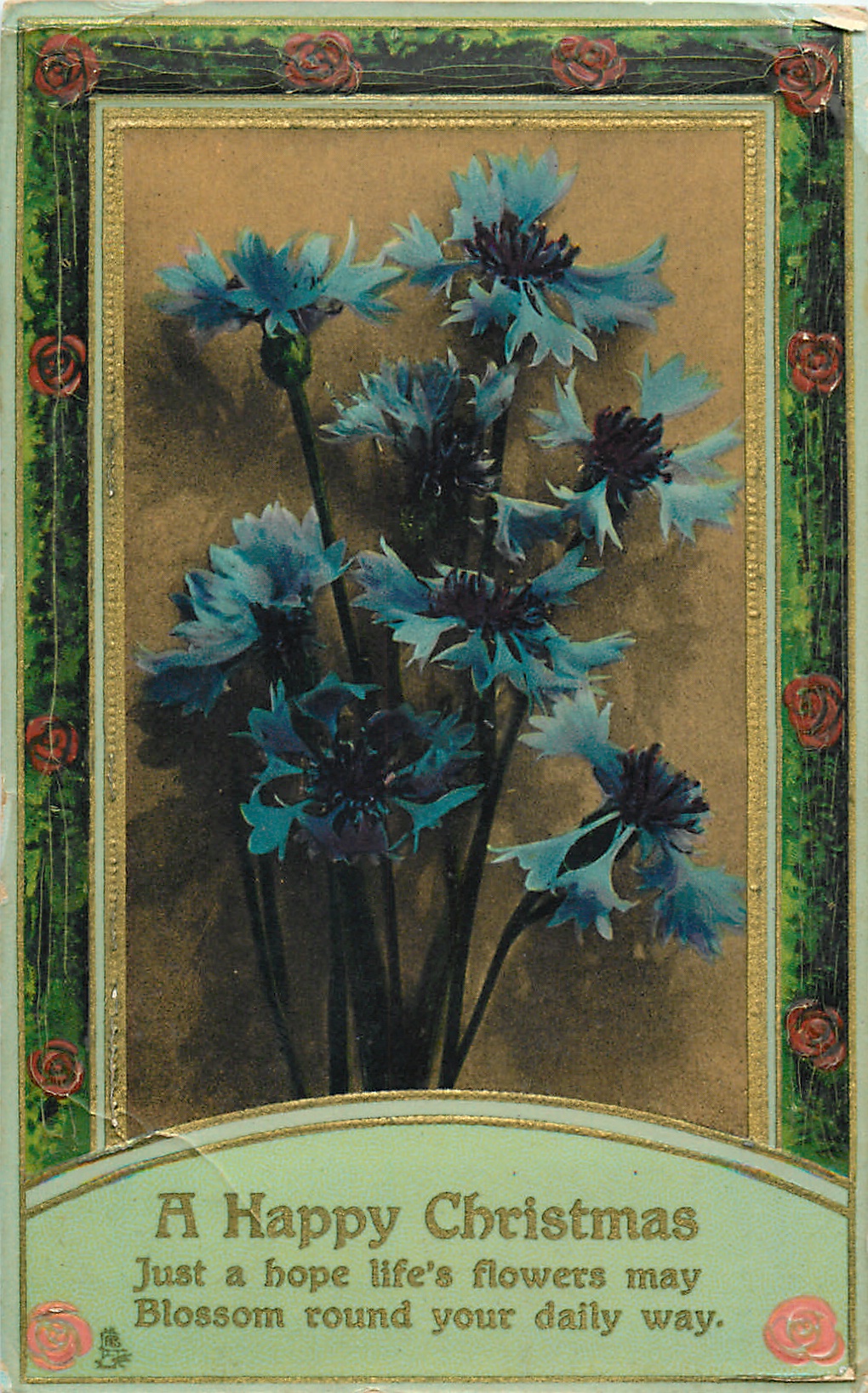 gilt embossed borders & gilt inscriptions, FRAMED GEM GLOSSO, PROCESSED IN SAXONY,, listed in floral section of 1912 Catalogue