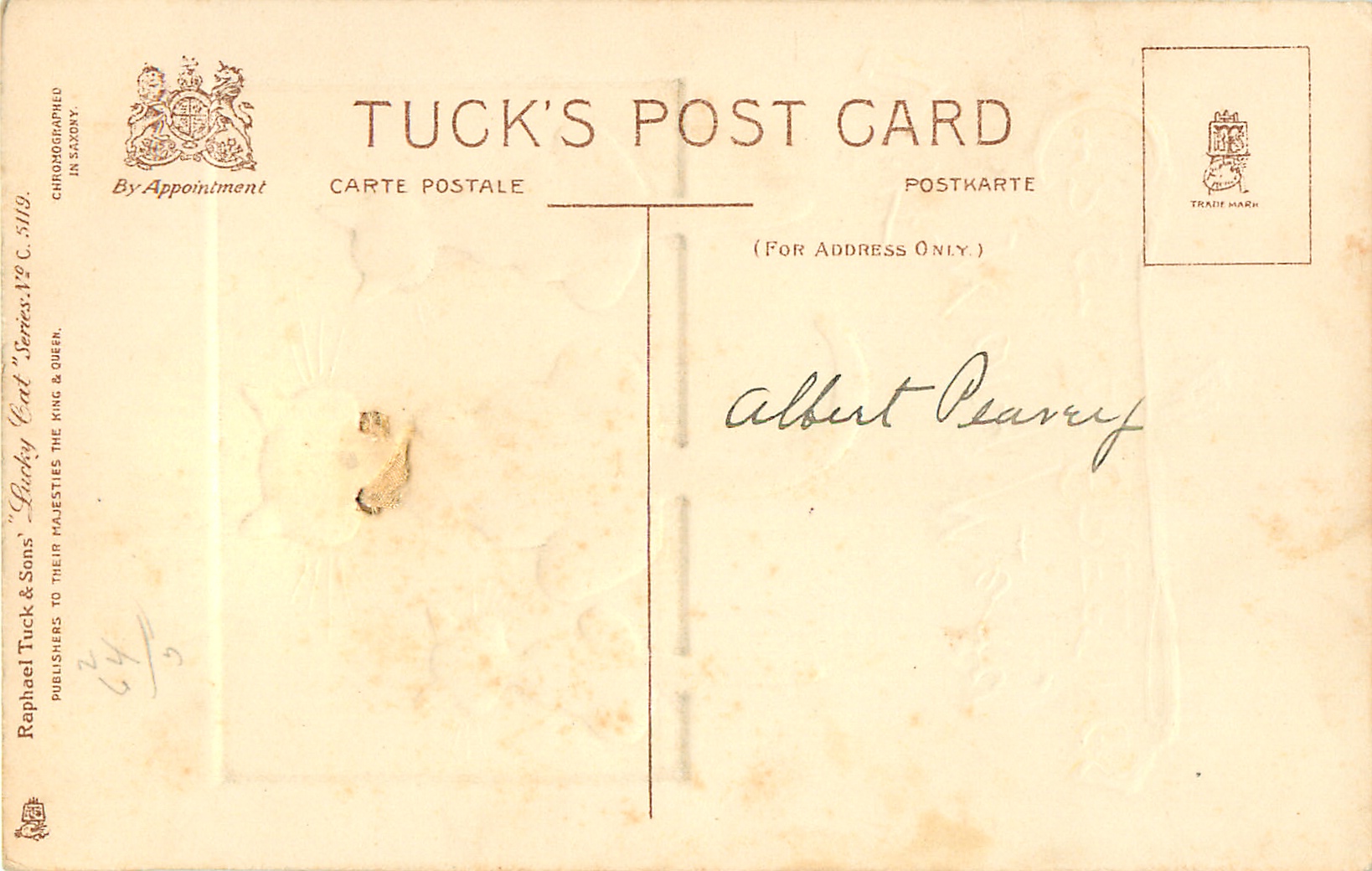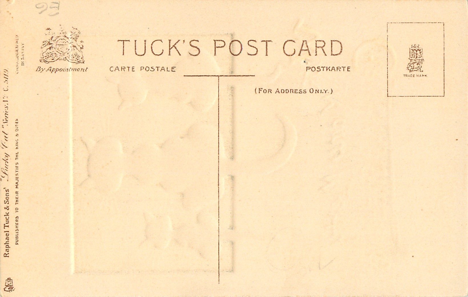 embossed, CHROMOGRAPHED IN SAXONY, come with wool tail or bow applique, same image & inscriptions C5120, C5121, C5317