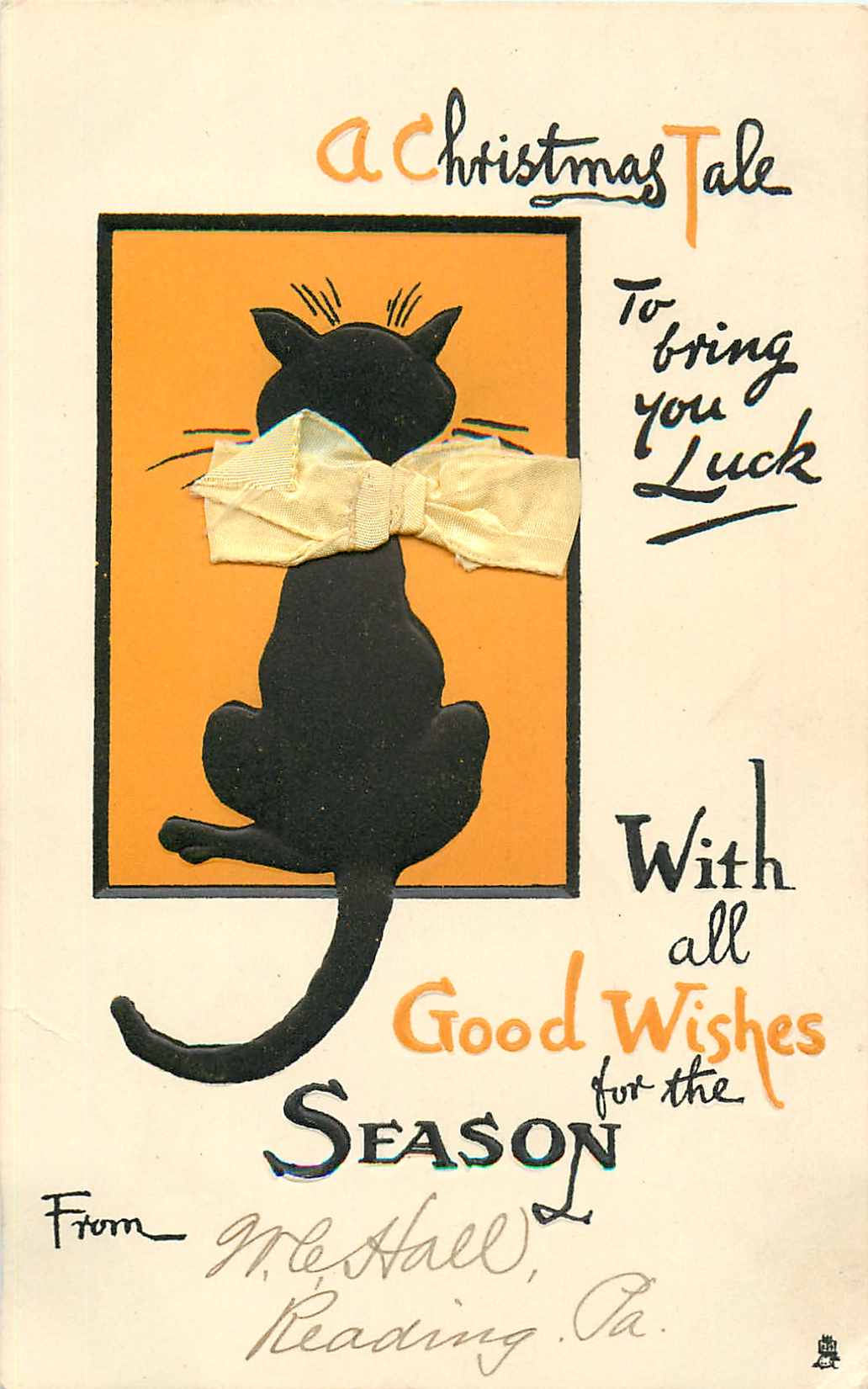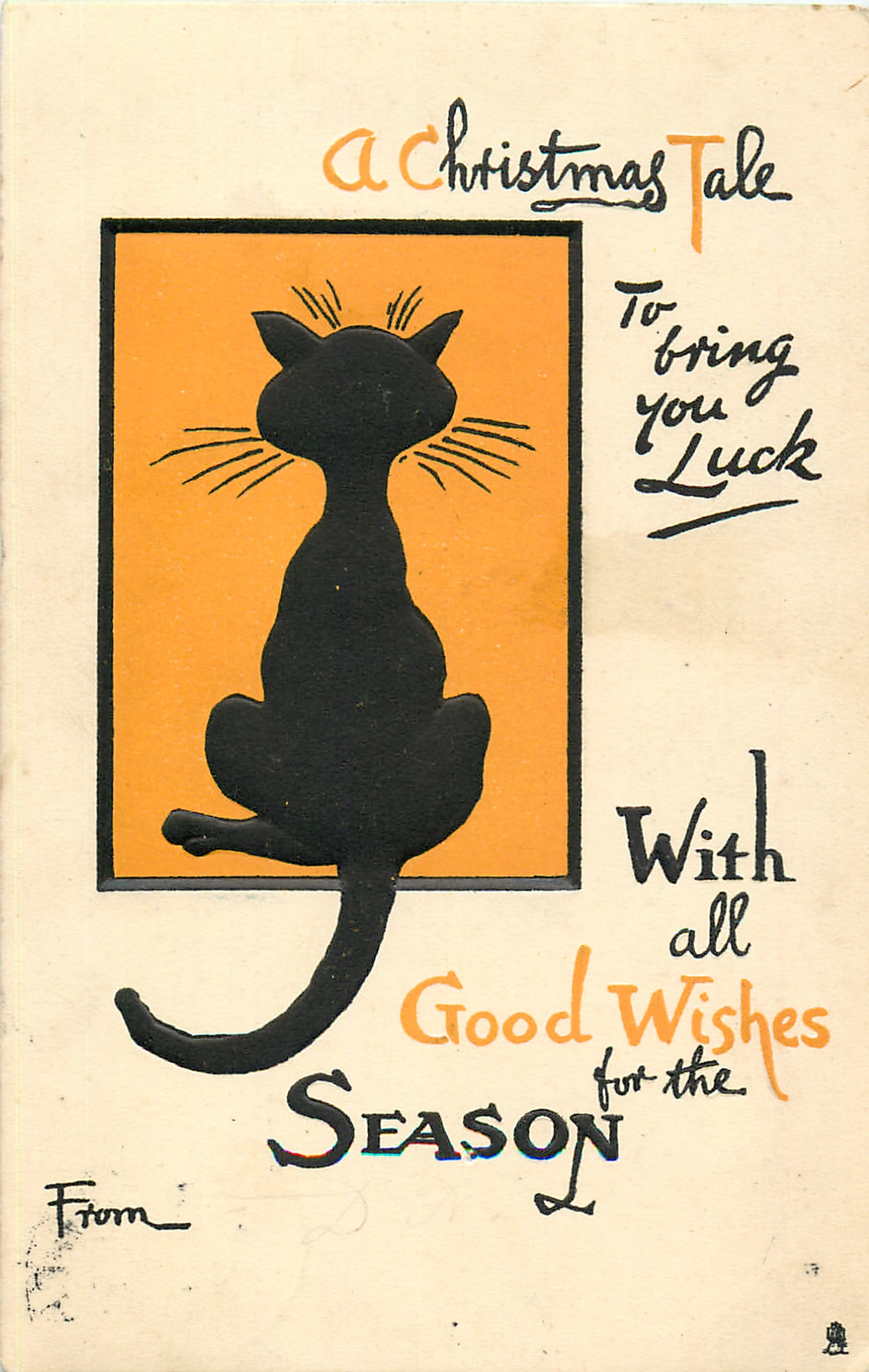 WITH ALL GOOD WISHES FOR THE SEASON black cat, orange background