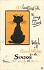 WITH ALL GOOD WISHES FOR THE SEASON black cat, red or orange background