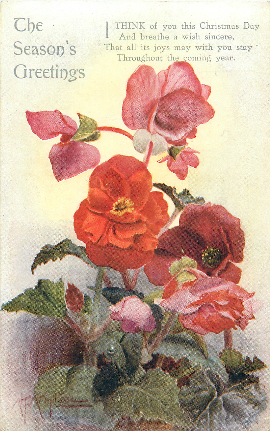 verse:- I THINK OF YOU THIS CHRISTMAS DAY AND BREATHE A WISH SINCERE, THAT ALL ITS JOYS MAY WITH YOU STAY THROUGHOUT THE COMING YEAR.