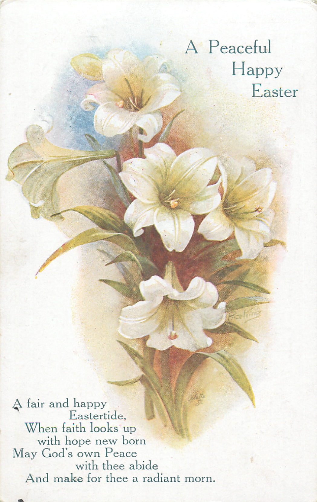 verse:- A FAIR AND HAPPY EASTERTIDE, WHEN FAITH LOOKS UP WITH HOPE NEW BORN MAY GOD'S OWN PEACE WITH//MORN.