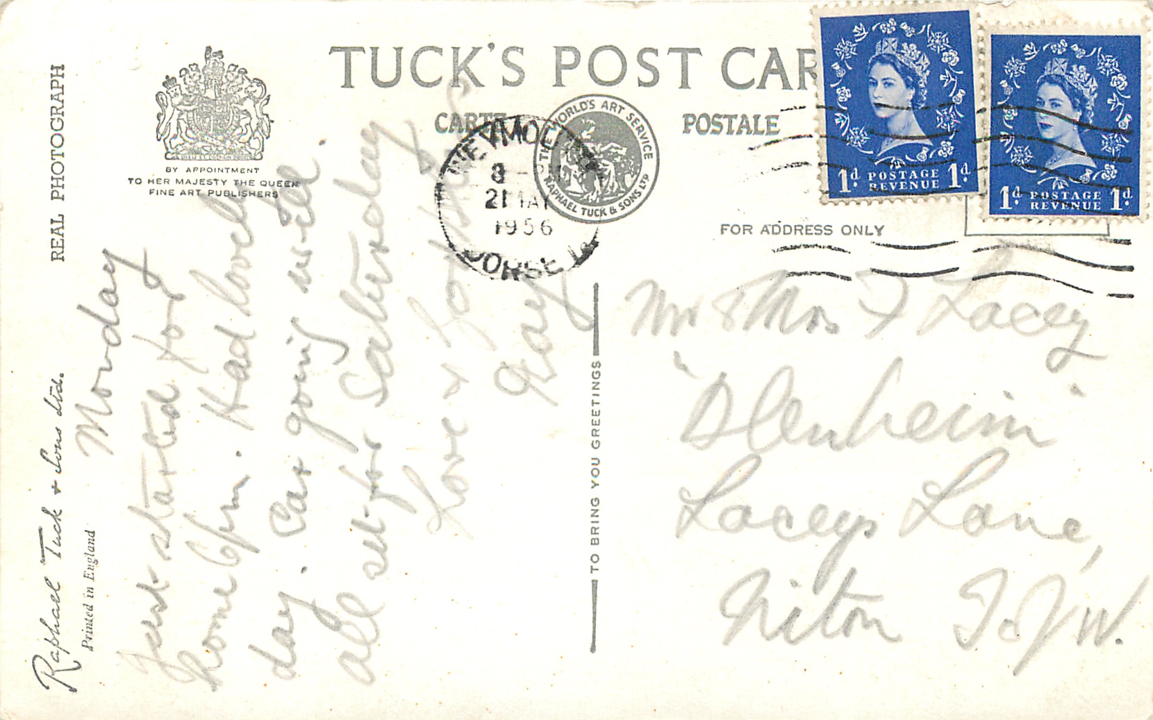 REAL PHOTOGRAPH, PRINTED IN ENGLAND, GREETINGS TO YOU or TO BRING YOU GREETINGS on back