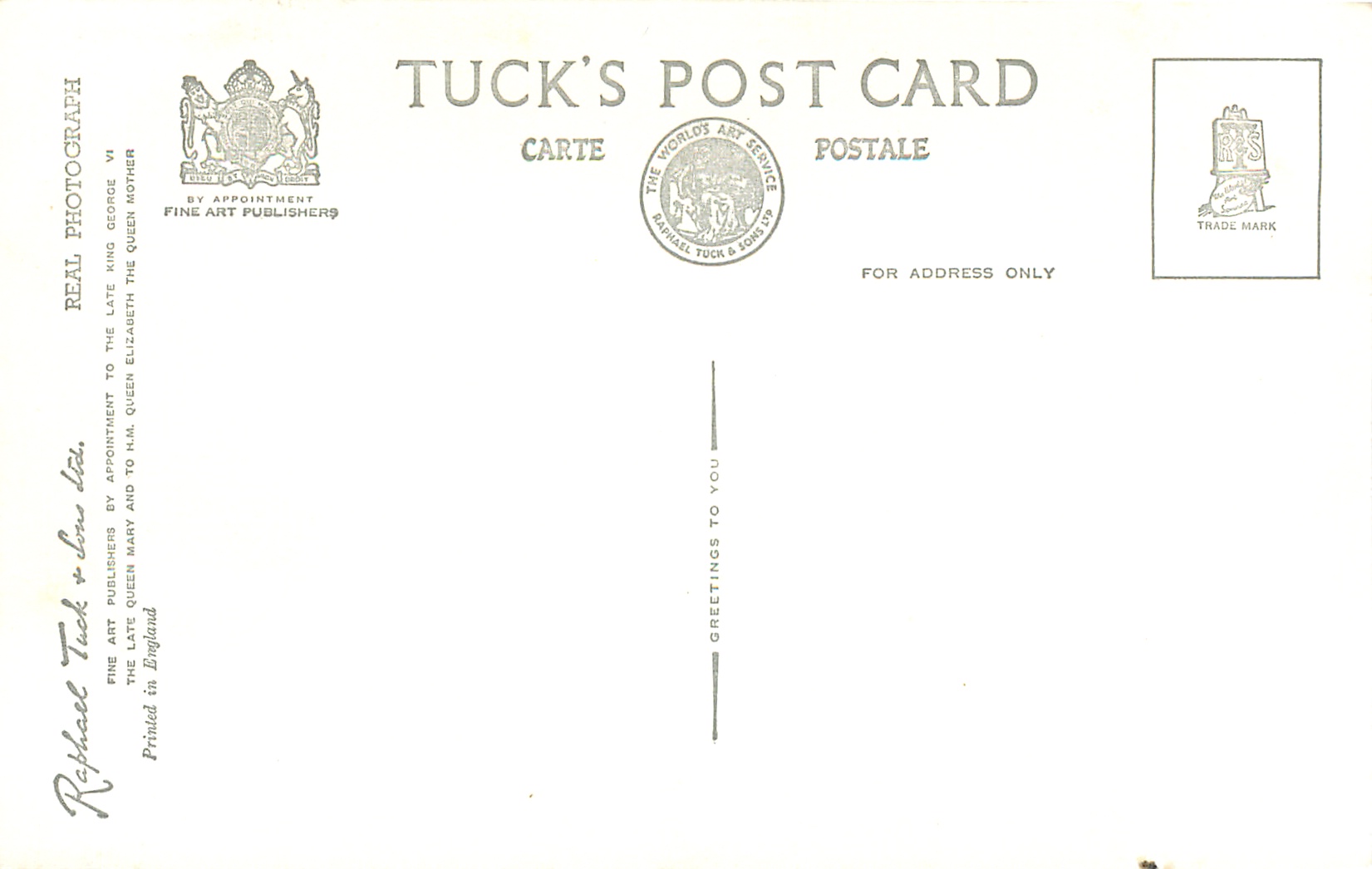REAL PHOTOGRAPH, PRINTED IN ENGLAND, GREETINGS TO YOU or TO BRING YOU GREETINGS on back