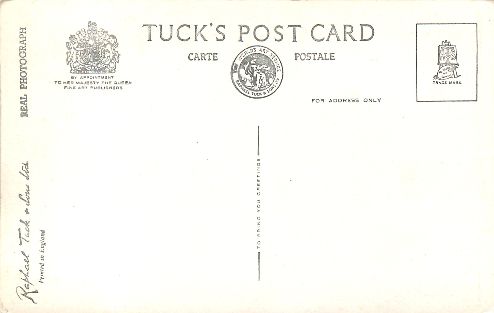 REAL PHOTOGRAPH, PRINTED IN ENGLAND GREETINGS TO YOU or TO BRING YOU GREETINGS on back