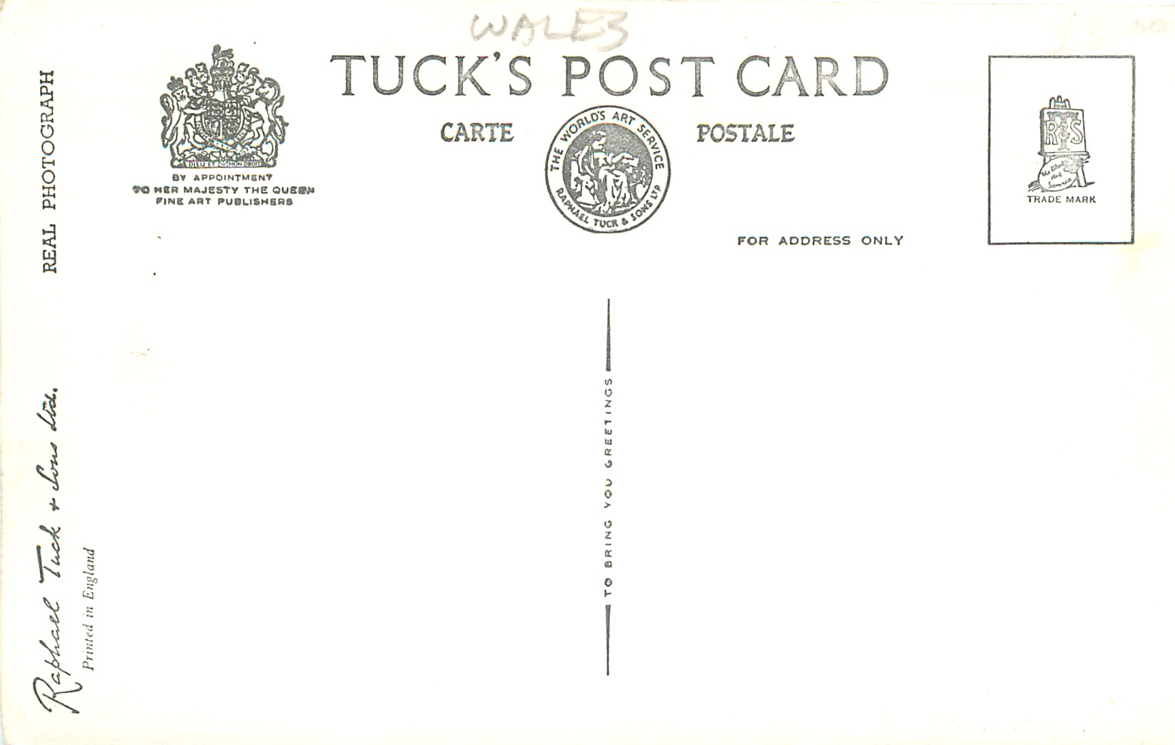 REAL PHOTOGRAPH, PRINTED IN ENGLAND GREETINGS TO YOU or TO BRING YOU GREETINGS on back