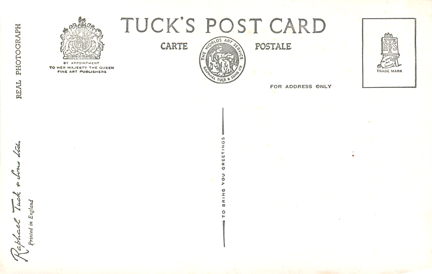 REAL PHOTOGRAPH, PRINTED IN ENGLAND GREETINGS TO YOU or TO BRING YOU GREETINGS on back