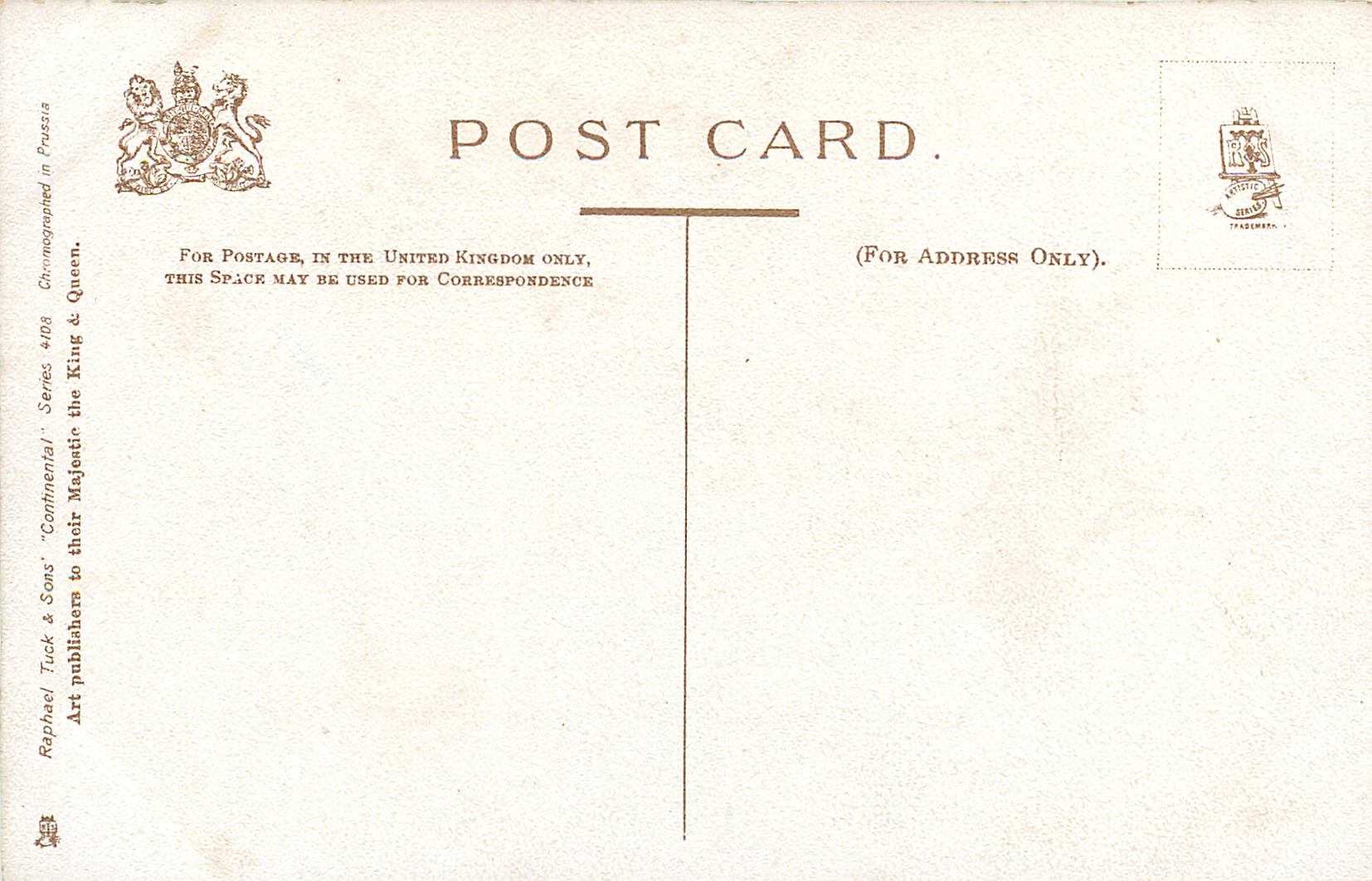 CONTINENTAL, CHROMOGRAPHED IN PRUSSIA, come divided & u/b, 2 backs, listed in 1904 POSTCARD Catalogue