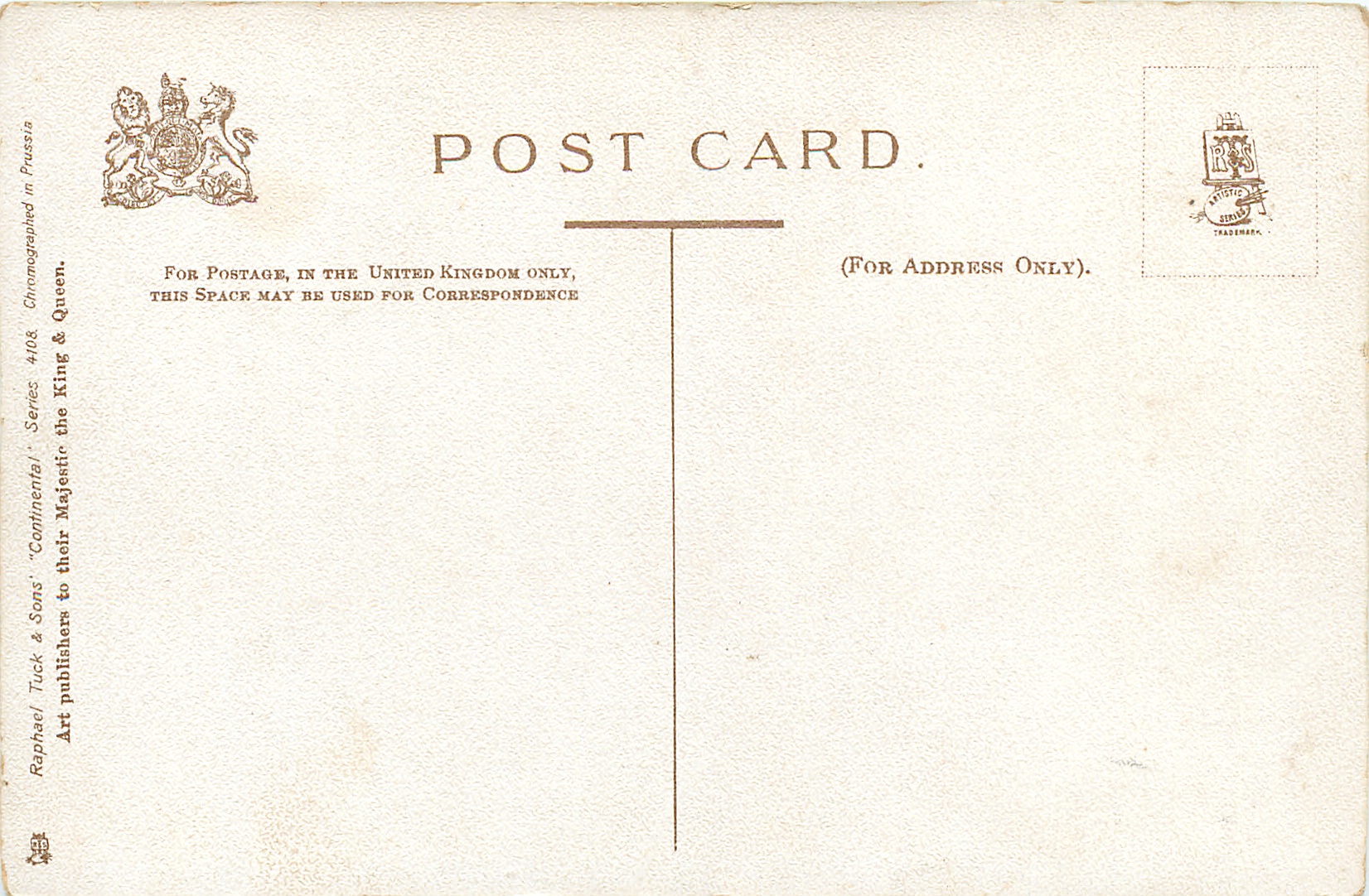 CONTINENTAL, CHROMOGRAPHED IN PRUSSIA, come divided & u/b, 2 backs, listed in 1904 POSTCARD Catalogue