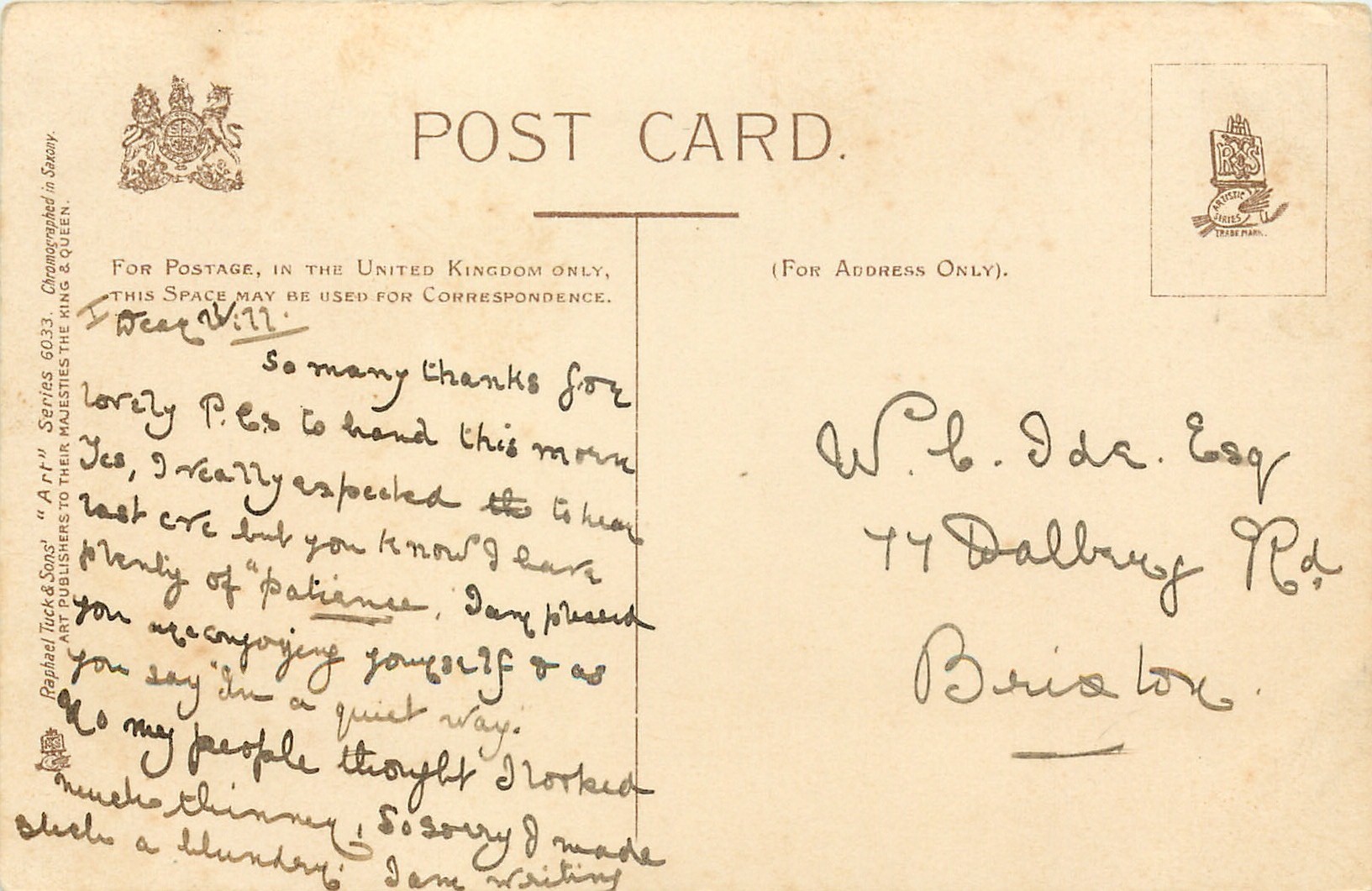 ART, CHROMOGRAPHED IN SAXONY, set title does not appear on cards, listed in 1908/1909 & 1911/1912 Postcard Catalogue