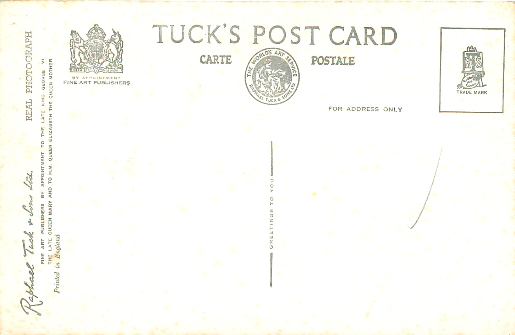 REAL PHOTOGRAPH, PRINTED IN ENGLAND, GREETINGS TO YOU or TO BRING YOU GREETINGS on back