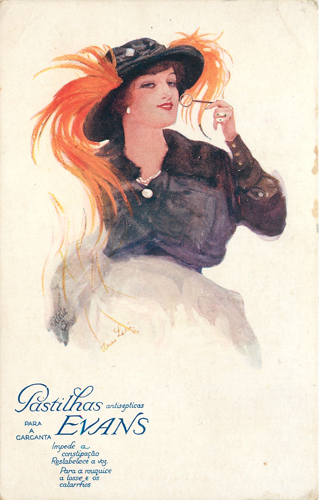 on front in blue & on back in brown PASTILLAS ANTISEPTIC PARA LA GARGANTA EVANS IMPEDE A CONSTIPACAO RESTABELECE A VOZ, PARA A ROUQUICE A LOSSE E OS CATARRHOS