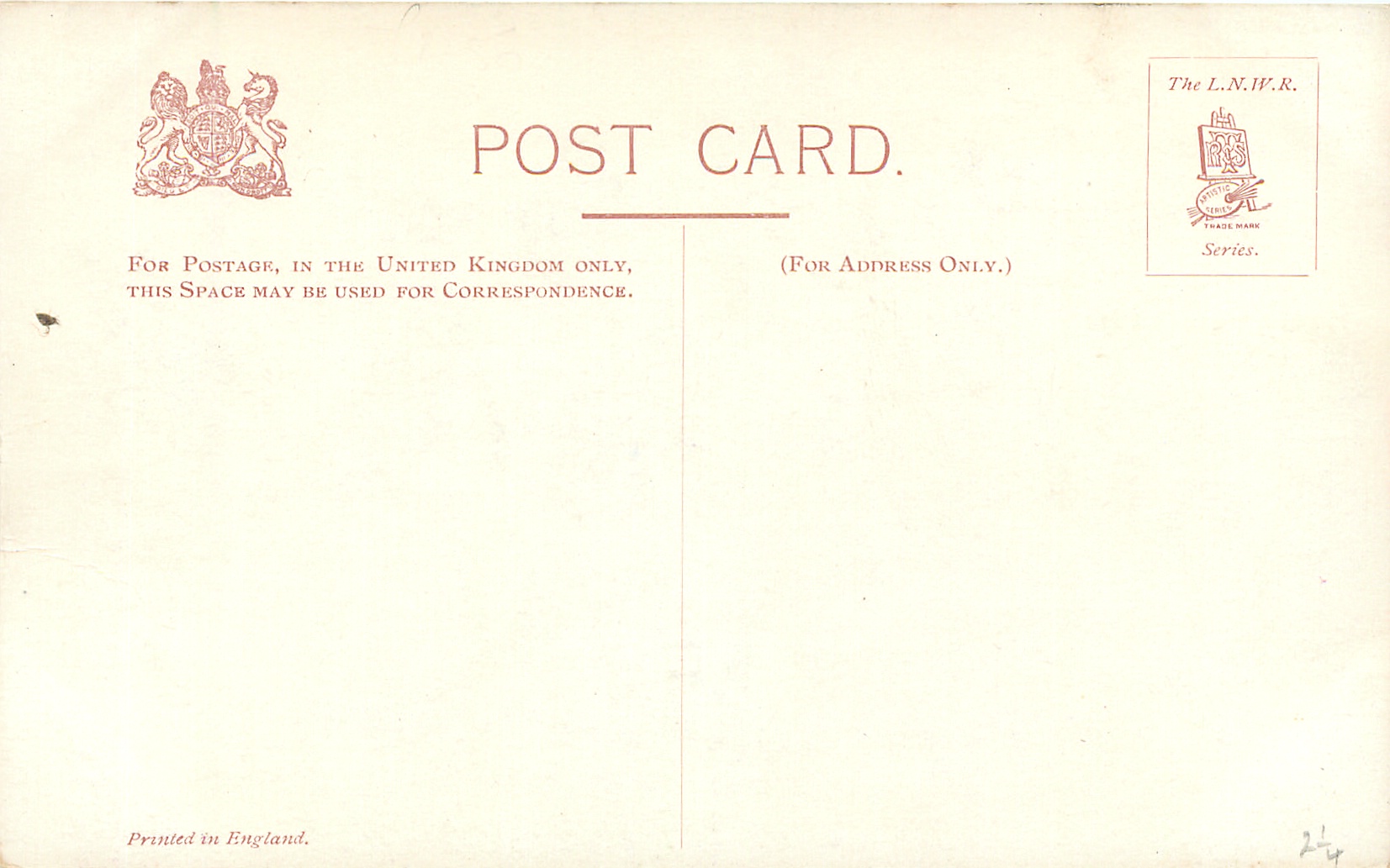 coloured THE L.N.W.R. SERIES (in stamp box), PRINTED IN ENGLAND or not for more information & allocation to sets see The Official Railway Postcard Book by John Alsop