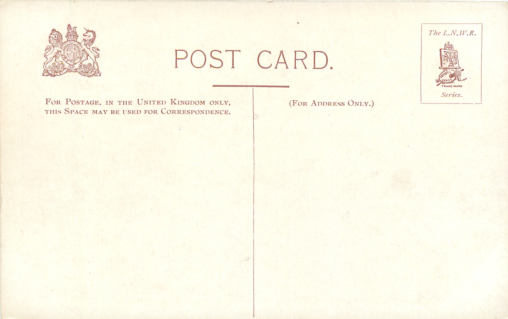 coloured THE L.N.W.R. SERIES (in stamp box), PRINTED IN ENGLAND or not for more information & allocation to sets see The Official Railway Postcard Book by John Alsop