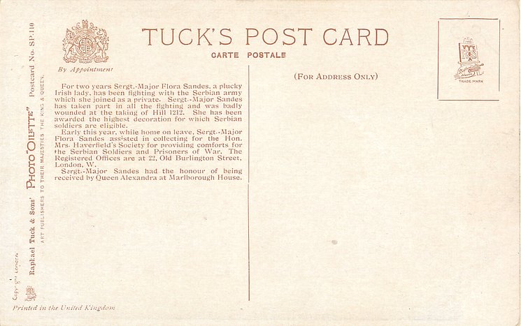 SERGEANT - MAJOR FLORA SANDES, THE ONLY BRITISH WOMAN IN THE SERBIAN ARMY under British & Serbian flags