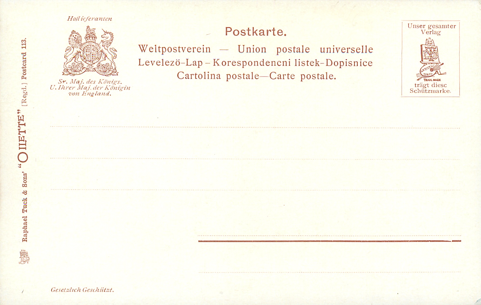 OILETTE, international back, GESETZLICH GESCHUTZT, same images CLOUDS AND SHADOWS 3374 & 7156, & French back SERIE 367