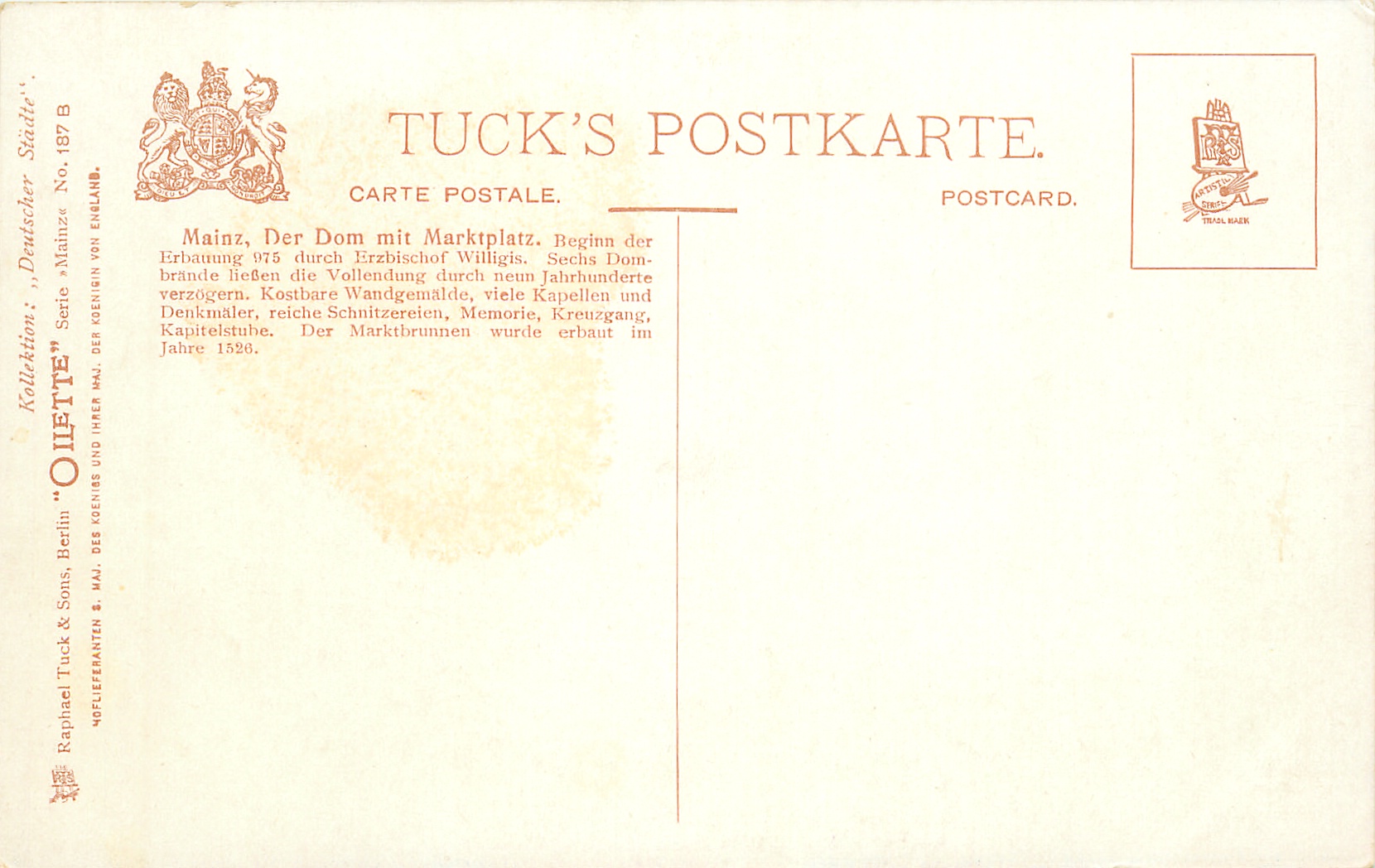 OILETTE KOLLEKTION DEUTSCHER STADTE or OILETTE, WEITE-WEITE-WELT, suffix B, come with red ad. in stamp box DROGERIE SCHILLING TELEPHON 823 FRAUENLOBSTR. 72 NAHE OBER-REALSCHULE