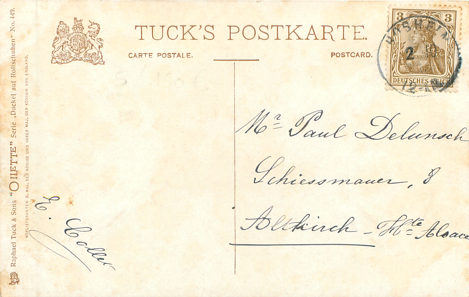 OILETTE, same images English backs 9803 OILETTE & titled DOGGIE WOULD A RINKING GO!