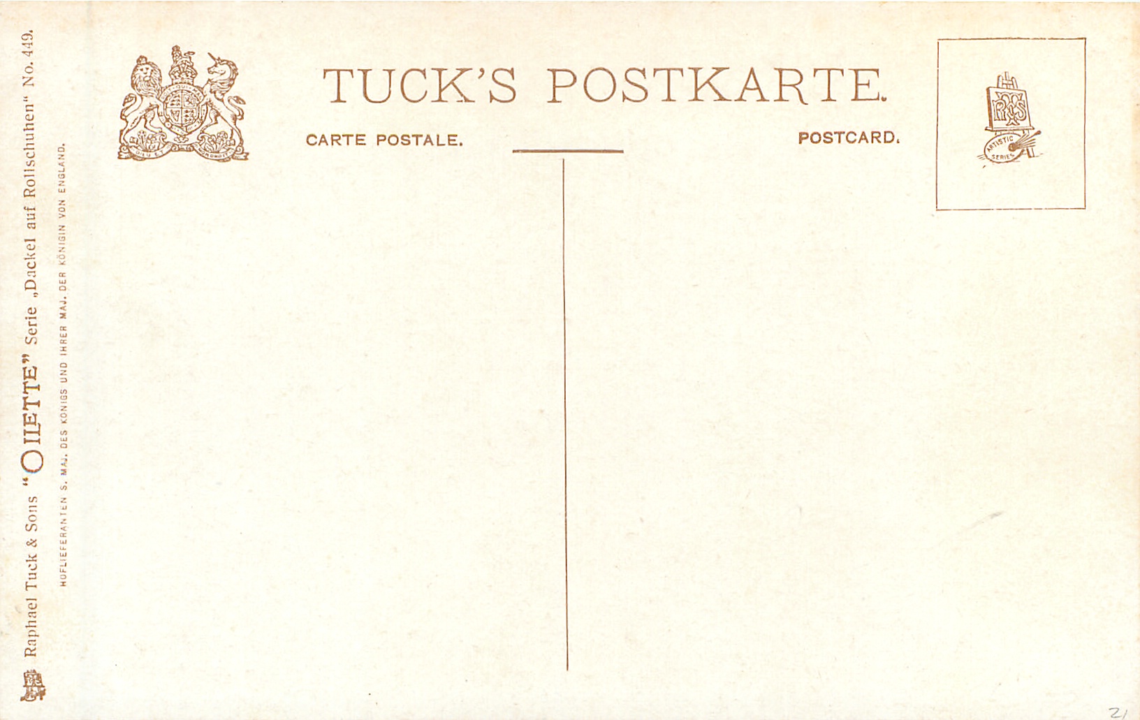 OILETTE, same images English backs 9803 OILETTE & titled DOGGIE WOULD A RINKING GO!