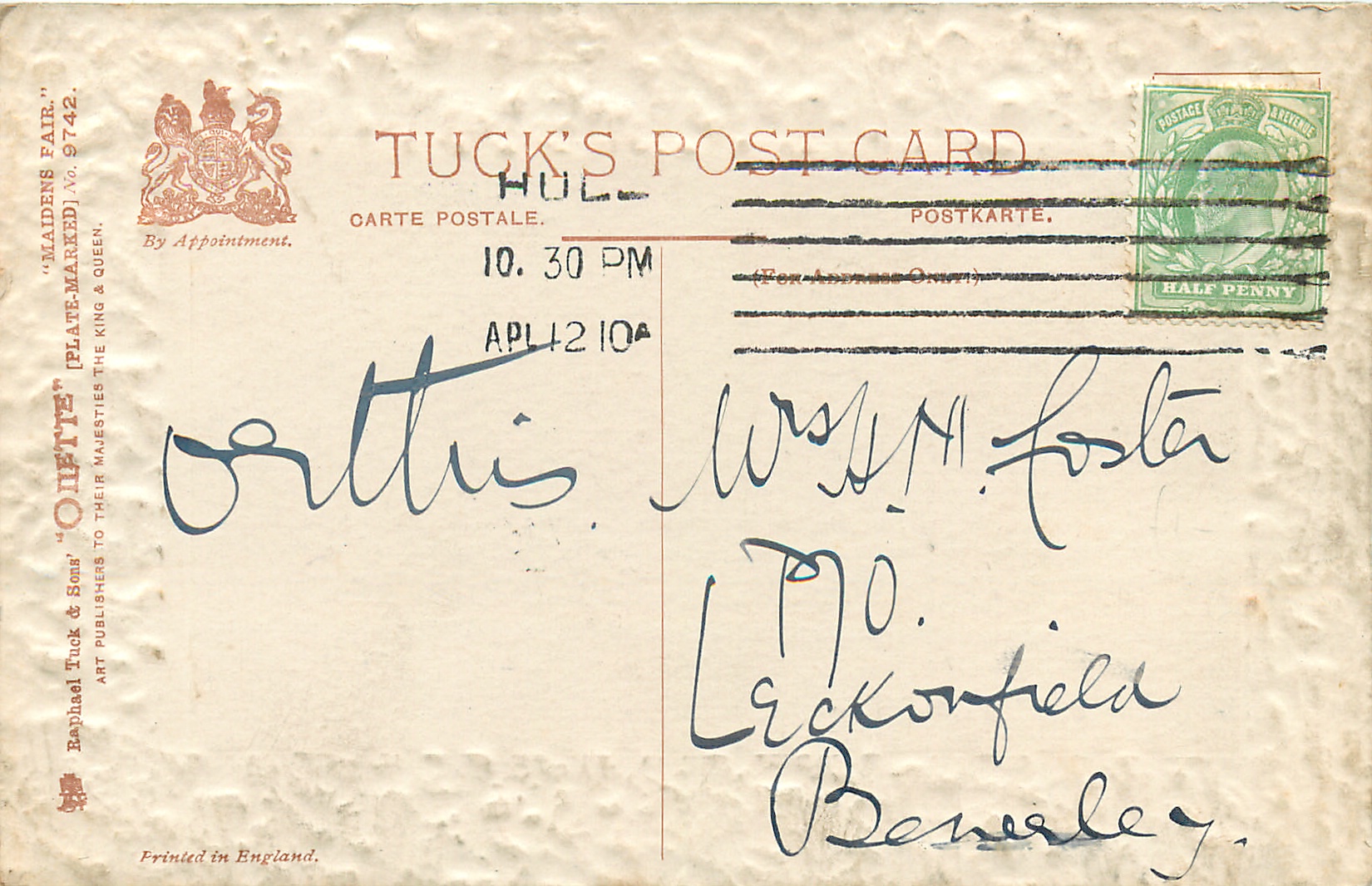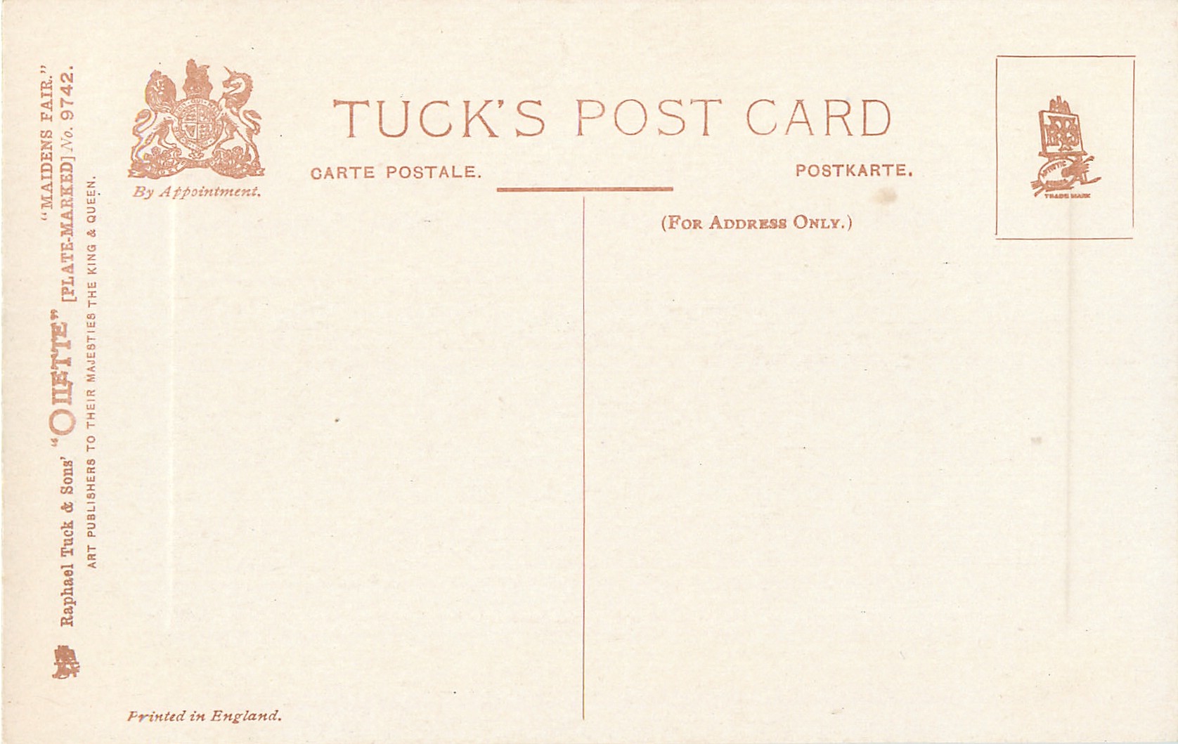OILETTE, PLATE-MARKED, PRINTED IN ENGLAND, listed in 1908/1909 Catalogue