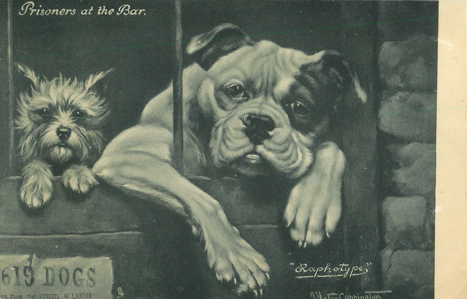 PRISONERS AT THE BAR west highland terrier & bulldog behind bars