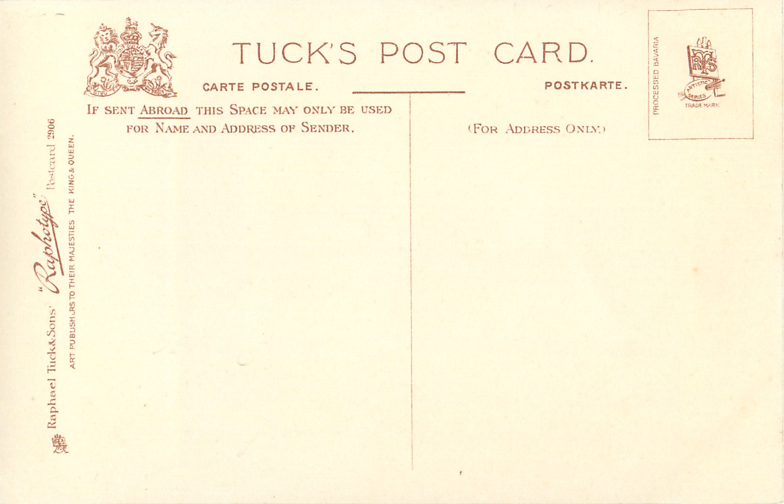 grey-green, RAPHOTYPE, 2 backs, PROCESSED BAVARIA (in stamp box) or PRODUCED IN BAVARIA, same images 2806, listed in 1904 POSTCARD Catalogue