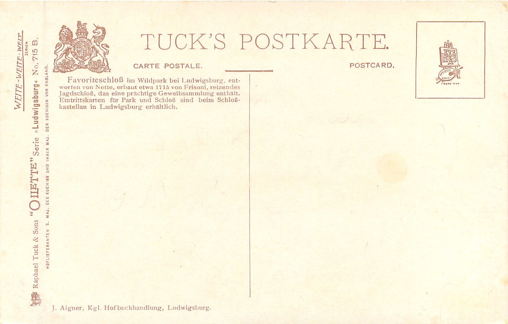 OILETTE WEITE-WEITE-WELT, suffix B, come with J. ALGNER, KGL. HOFBUCHHANDLUNG, LUDWIGSBURG