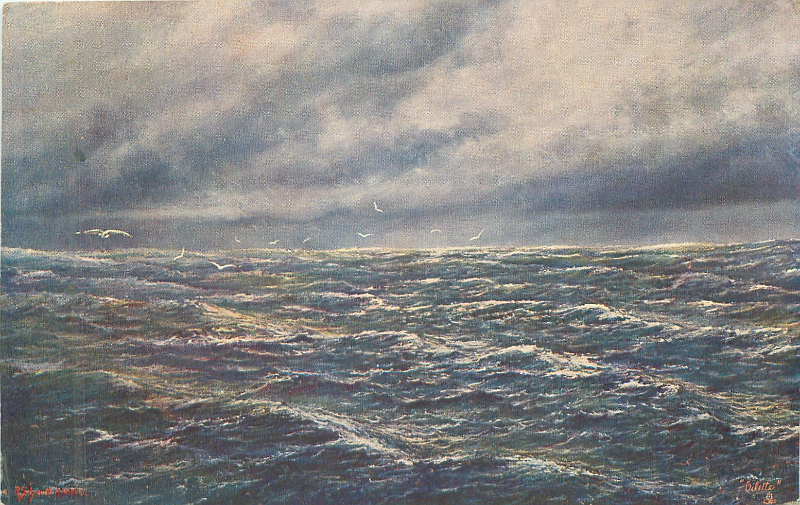OILETTE, same images, English back, OILETTE CONNOISSEUR 2897 untitled cards WHAT ARE THE WILD WAVES SAYING?, SERIES X, NACH EINEM ORIGINAL VON ROBERT-SCHMIDT.