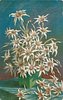 white eidelweis flowers with yellow centres in green squared pot on blue table