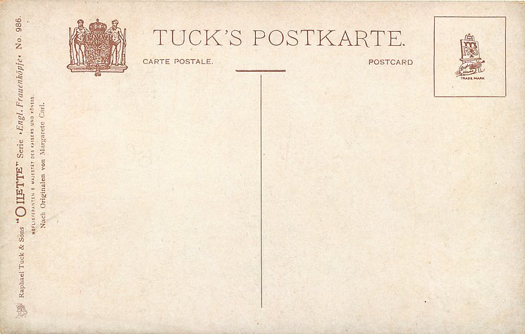 OILETTE, NACH ORIGINALEN VON MARGARETE CARL, come with & w/o card titles, come with CAFE LE LYS ROUGE BRUXELLOISE or VRAAGT "VELONA" MARGARINE GOED EN GOEDKOOP DE BESTE VOOR DEN PRIJS adverts in black on back