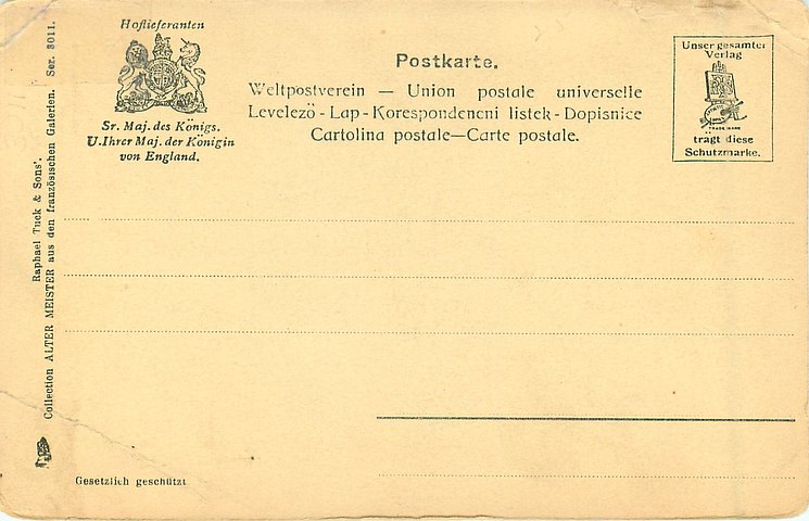 u/b, brown/purple, German/International backs, GESETZLICH GESCHUTZT, same images & numbers, French backs 3011 CHEFS D'OEUVRE DU MUSEE DU LOUVRE