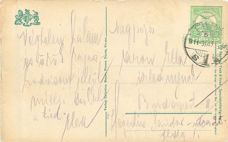 "ASPHALT", VERLAG CELESTINA MAYER, PIAZZA DANTE, FIUME (vert. mid-card), back partly in German