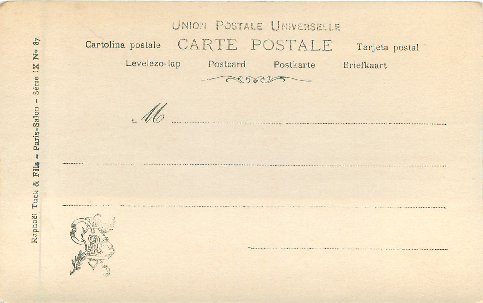 same image SALON 1905 (on front), RAPHAEL TUCK & FILS--PARIS SALON SERIES X No 93 (on back)