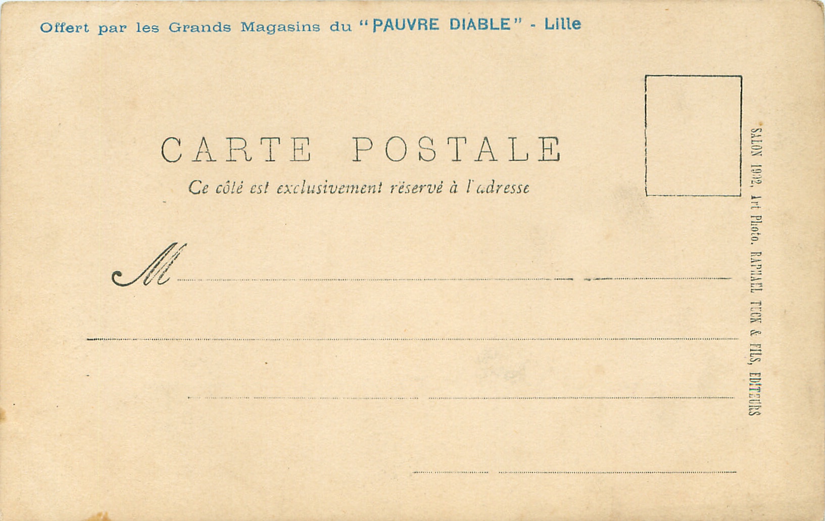 comes with blue opt. on back OFFERT PAR LES GRANDS MAGASINS DU "PAUVRE DIABLE"--LILLE